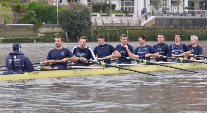 In last Sunday’s Boat Race, a lot of publicity was given to one man because he was twice the age of each of his crewmates. Therefore, it was only fitting that a race run the previous day containing 16 oarsmen old enough to remember a time before Broadband should attract the attention of The Times. Unusually, the newspaper devoted over half a page to a rowing event, a rather obscure one at that. This was the 24th Oxford – Cambridge Veterans’ Race, run between Putney and Hammersmith.