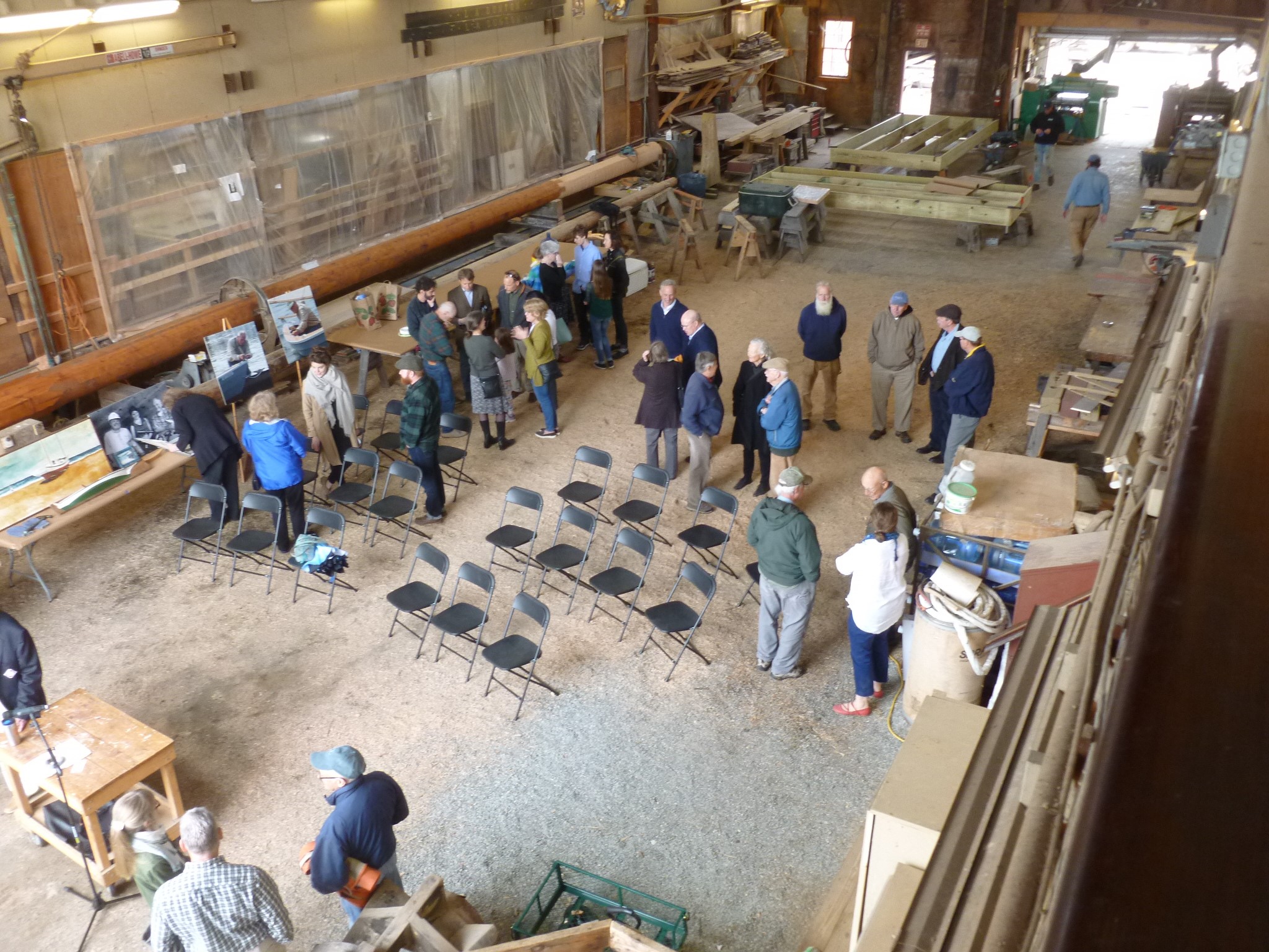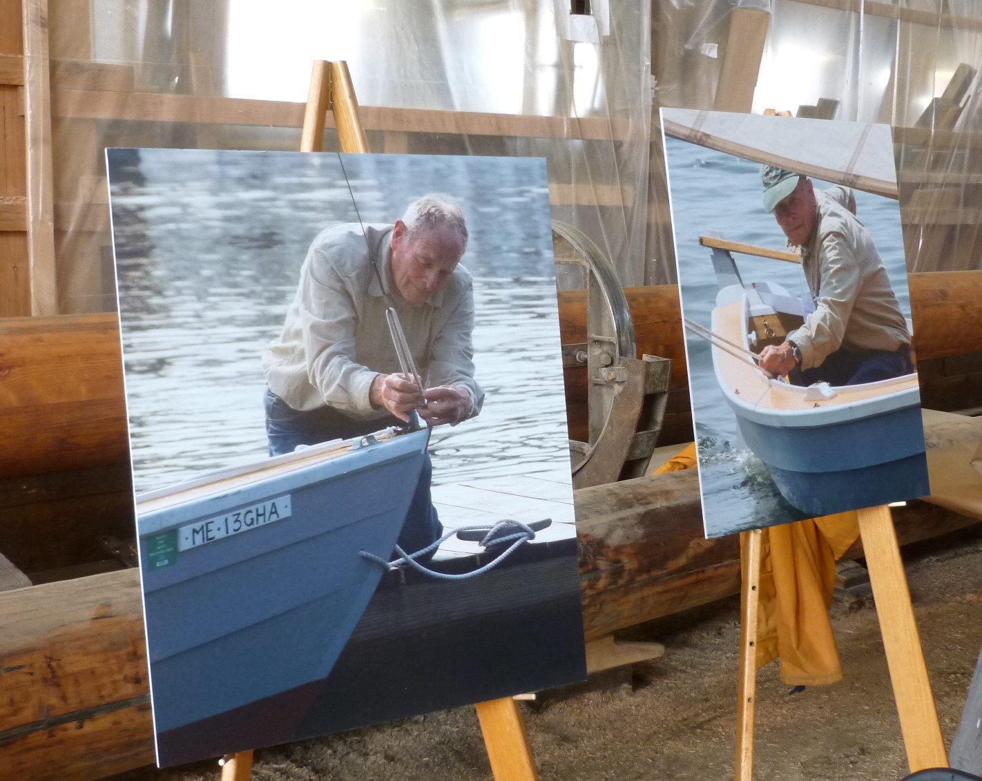 People gathering in the Main Shop at the Museum’s Shipyard for the celebration of Will Ansel.Will Ansel’s son Walter telling stories about his father’s life. As a 6-year-old Will moved to China with his parents and siblings when his father was serving on a U.S. destroyer patrolling the Chinese Sea. In 1938, the Ansel family – Will, his mother and siblings – had to flee when Japanese’ forces attacked China. Walter said that Will had told him that the family’s Chinese nanny had grabbed Will under her arm and started running down to the harbour where they lived. The Ansels fled to the Philippines, but again, head over heels, they had to flee when the Japanese forces invaded the Philippines in 1942. Walter also read a wonderful essay written by Will in 1971 about what it was like to work as a shipwright at Mystic Seaport Museum before the opening of the Henry B. duPont Preservation Shipyard. Walter’s speech was followed by some remembrances by his daughter, Evelyn, who spoke warmly about her grandfather. Quentin Snediker, director of the Shipyard, also spoke about how he met and worked with Will.A 2015 photograph of three generations of boatbuilders working at Mystic Seaport Museum, Walter, Evelyn and Will, restoring the whaleship “Charles W. Morgan”. This photograph was taken by Museum photographer Andy Price.On display in the Shipyard was also some of Will’s books, tools, a half-model, a painting and sketch book.