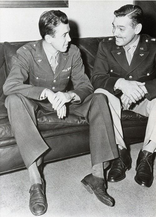 With 28 films under his belt, Stewart was inducted into the U.S. Army in March 1941, the first major American film star to put on a military uniform. He joined the Army as a private eight and a half months before the attack on Pearl Harbor (7 December 1941), which otherwise was the major event for Americans to sign up for military service. Two other film stars also joined the U.S. Armed Forces later that year, Stewart’s close friend, 37-year-old Henry Fonda who enlisted in the Navy, and the biggest star in Hollywood at that time, Clark Gable, who joined the Army Air Corp at age 40. As Stewart had an early interest in flying – he took a private pilot certificate in 1935 and a commercial pilot license in 1938 – he applied for an Air Corps commission. Stewart received his commission as second lieutenant on 1 January 1942.
