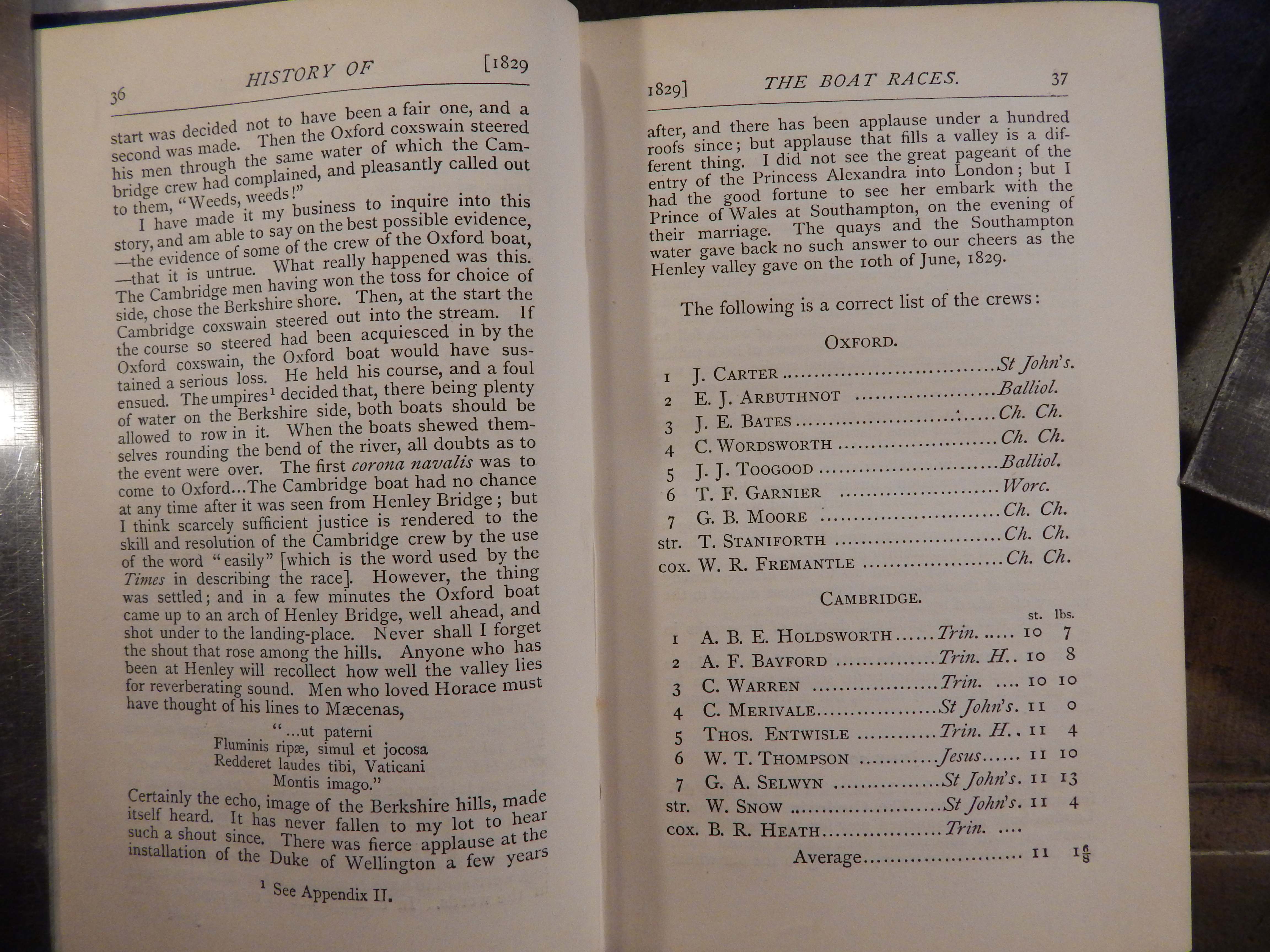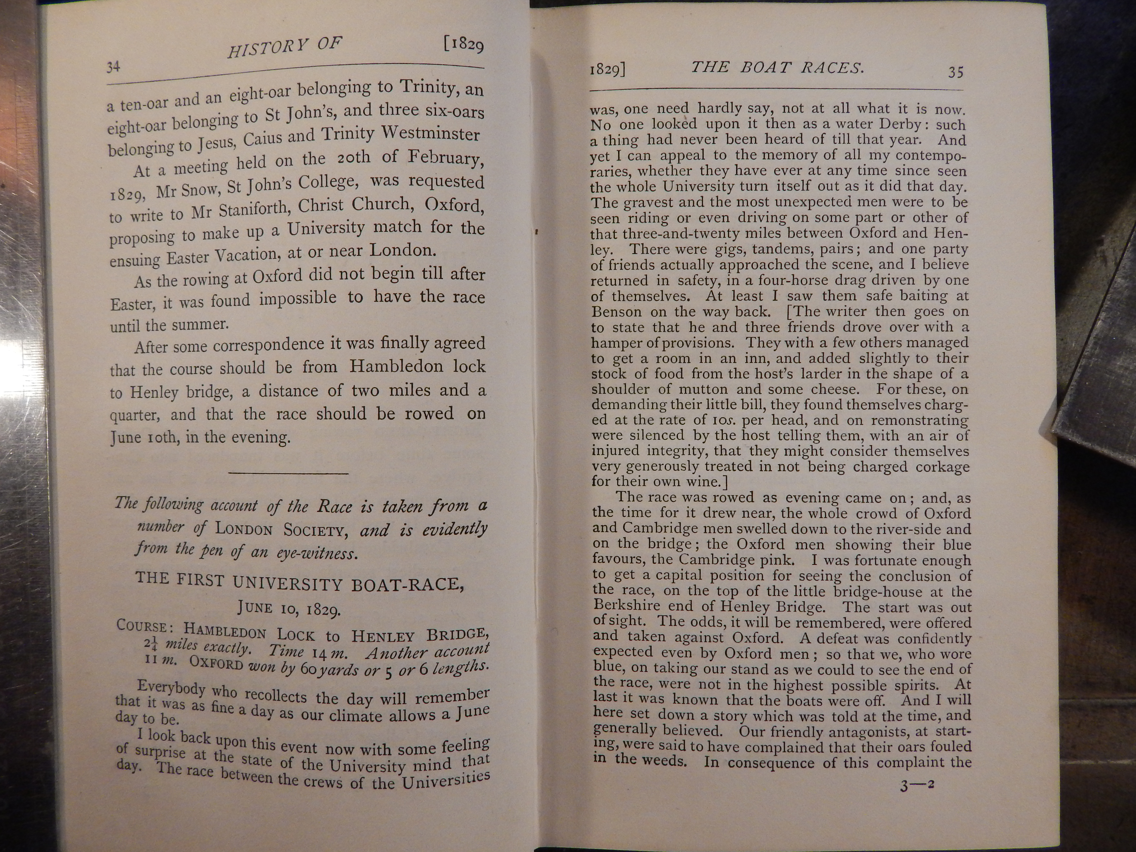 190 years of great sport and 190 years of press reactions too. Here the account of a not named eye witness of the first race taken from The Oxford and Cambridge Boat Races (Cambridge 1870).