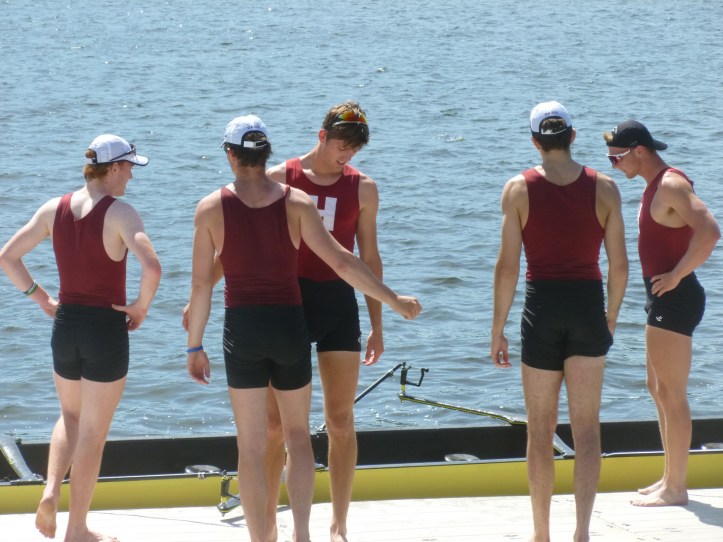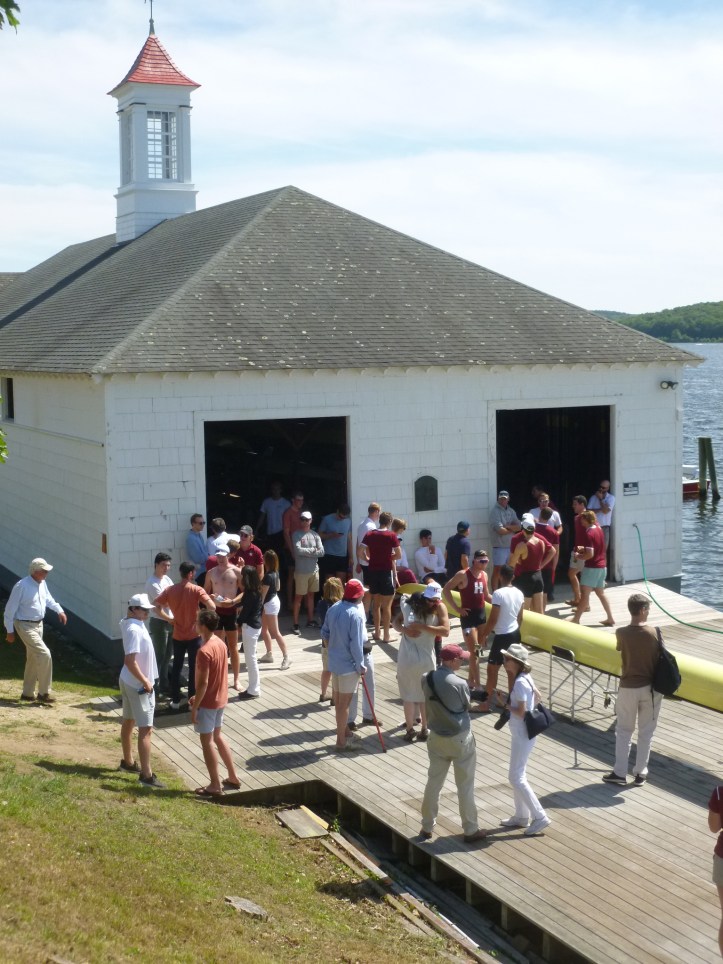 Saturday offered beautiful weather for the Yale-Harvard Regatta on the Thames River in New London, Connecticut. Harvard’s boathouse Red Top had generously opened its grounds for the public, including a simple rowing writer as yours truly.