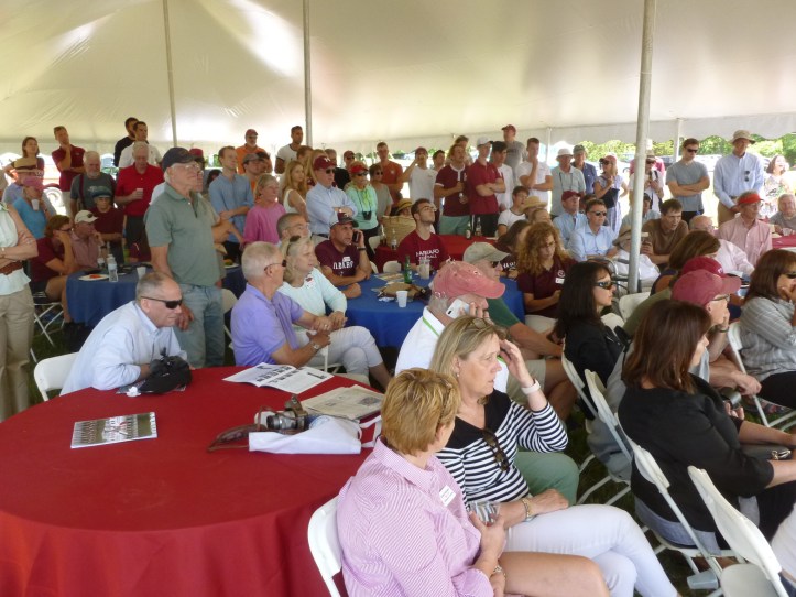 Many fans left the tent when we were able to see the two crews out on the river from Red Top. What seemed like a miracle, the Crimson sneaked up from behind, were suddenly neck-and-neck, then had a nose lead. The Bulldogs could not respond and fell behind. Rumour had it at Red Top that one of the Yale oarsmen collapsed but that is unconfirmed while I’m writing this. Big cheers from the Harvard fans when the Crimson crew crossed the finish line as the first boat. For the second consecutive year The New London Cup went to Harvard.