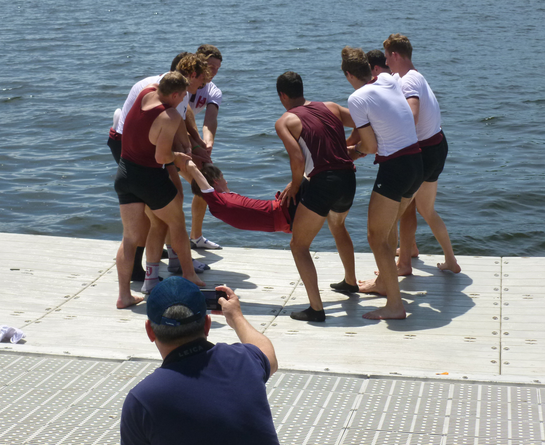Coming back to Red Top, the Crimson 3rd Varsity was met by cheers and applause. Parents, friends, girlfriends, fans and others took photographs of the happy nine, but took a couple of steps back when it was time for Nicolas Yan, the cox, to be tossed into the Thames.