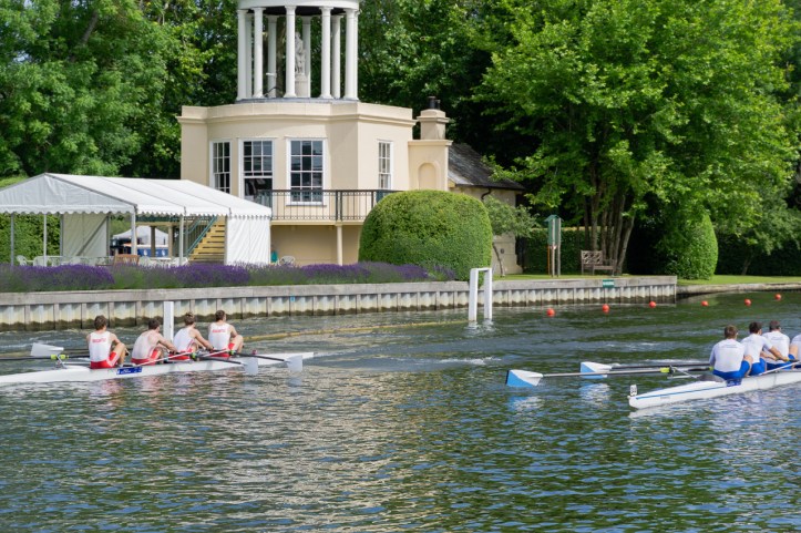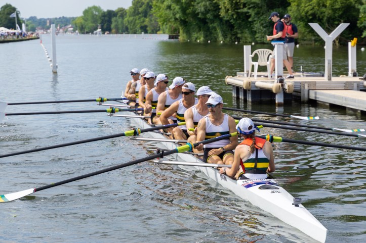 One of these is the start. Although the Henley regatta course allows the crowds to get much closer to the crews than most venues, for much of its length the towpath is separated from the boom by a transit lane. At the start, however, the crews are so close to the bank that it almost feels possible to reach out and touch the oars.