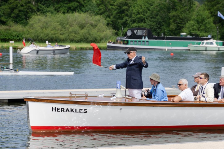 This being Henley, the Stewards do not speak directly with the boys on the starting pontoons.