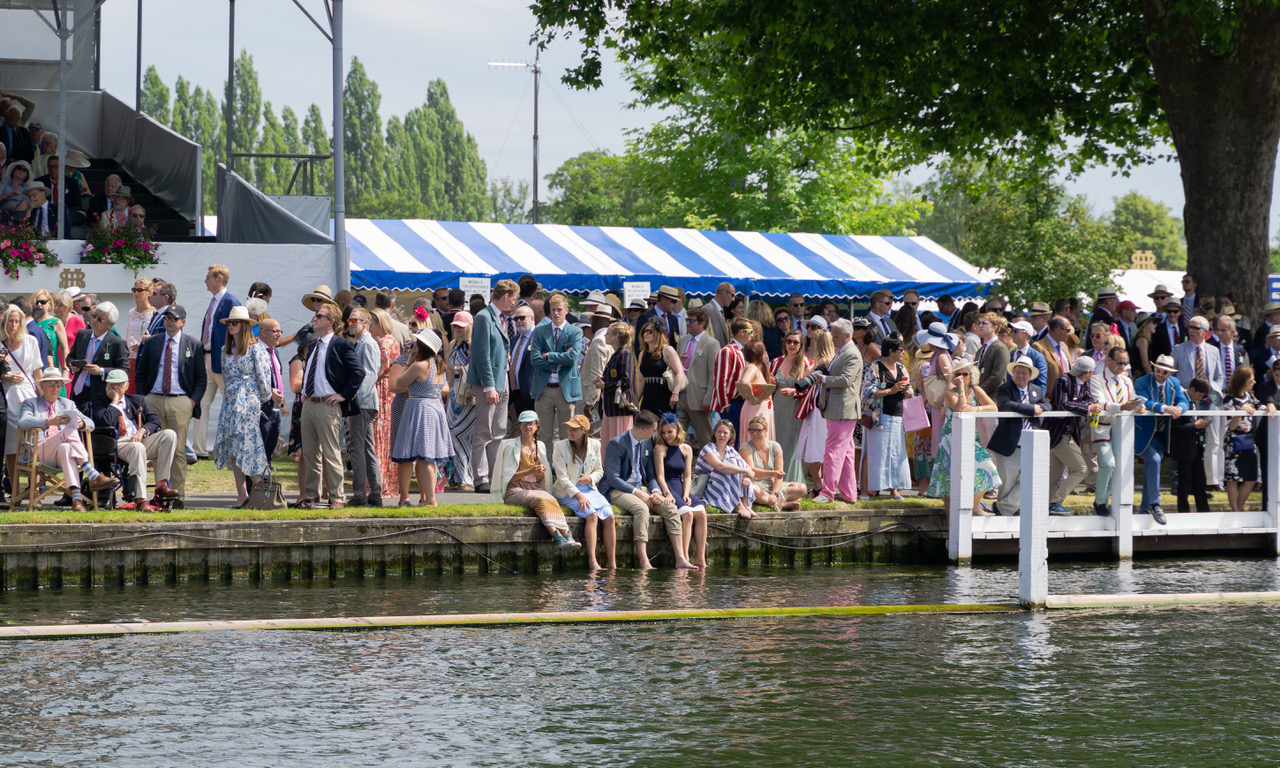 Notwithstanding some preconceptions, Henley Royal Regatta is remarkably egalitarian. There is a place for everyone. While rowing’s grandees are ensconced in Leander, and the connected people are in the Stewards’ Enclosure and Remenham, there is no end of other opportunities, many without a ticket price at all. Henley gives everyone the same chance to see the spectacle no matter how much or little they pay.