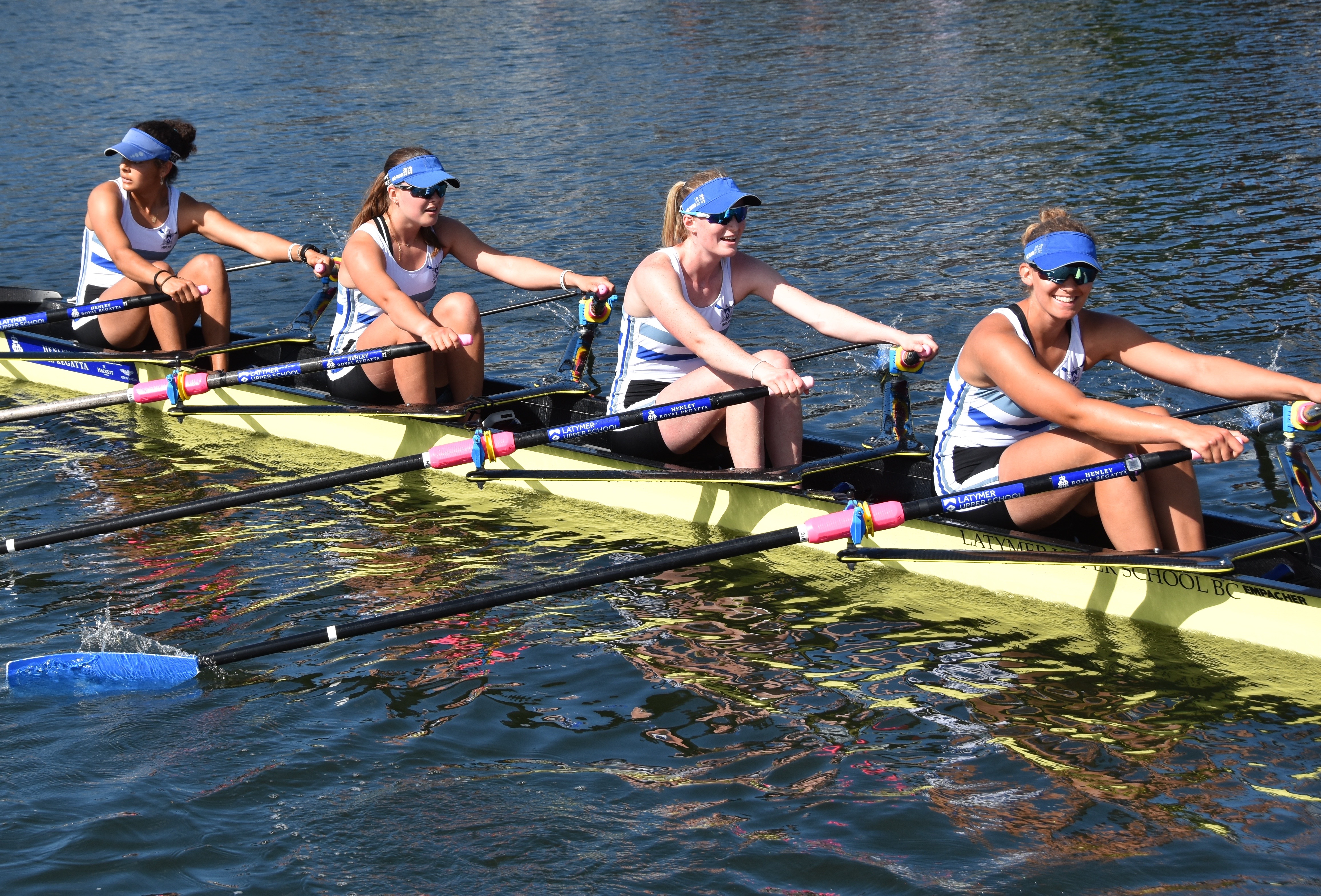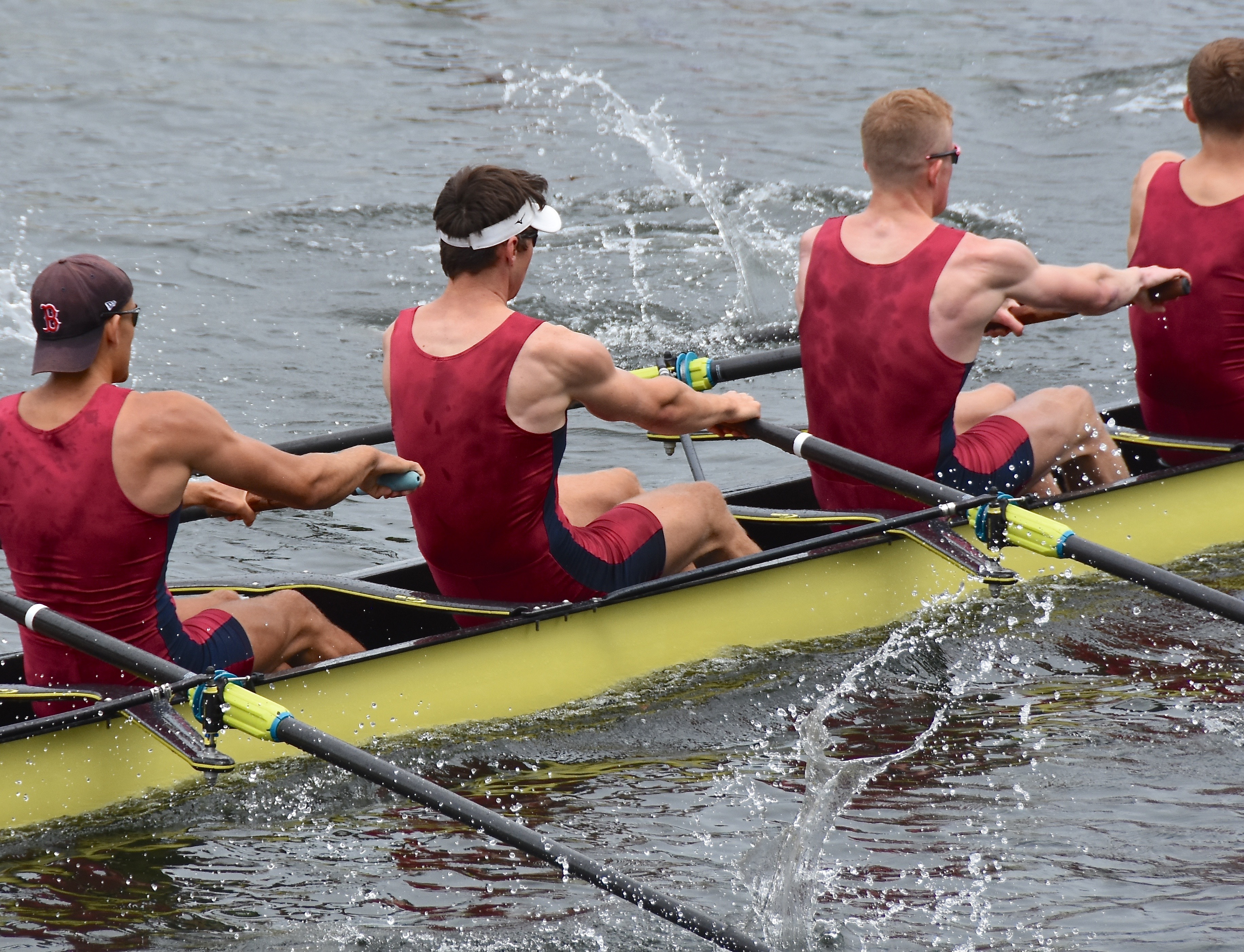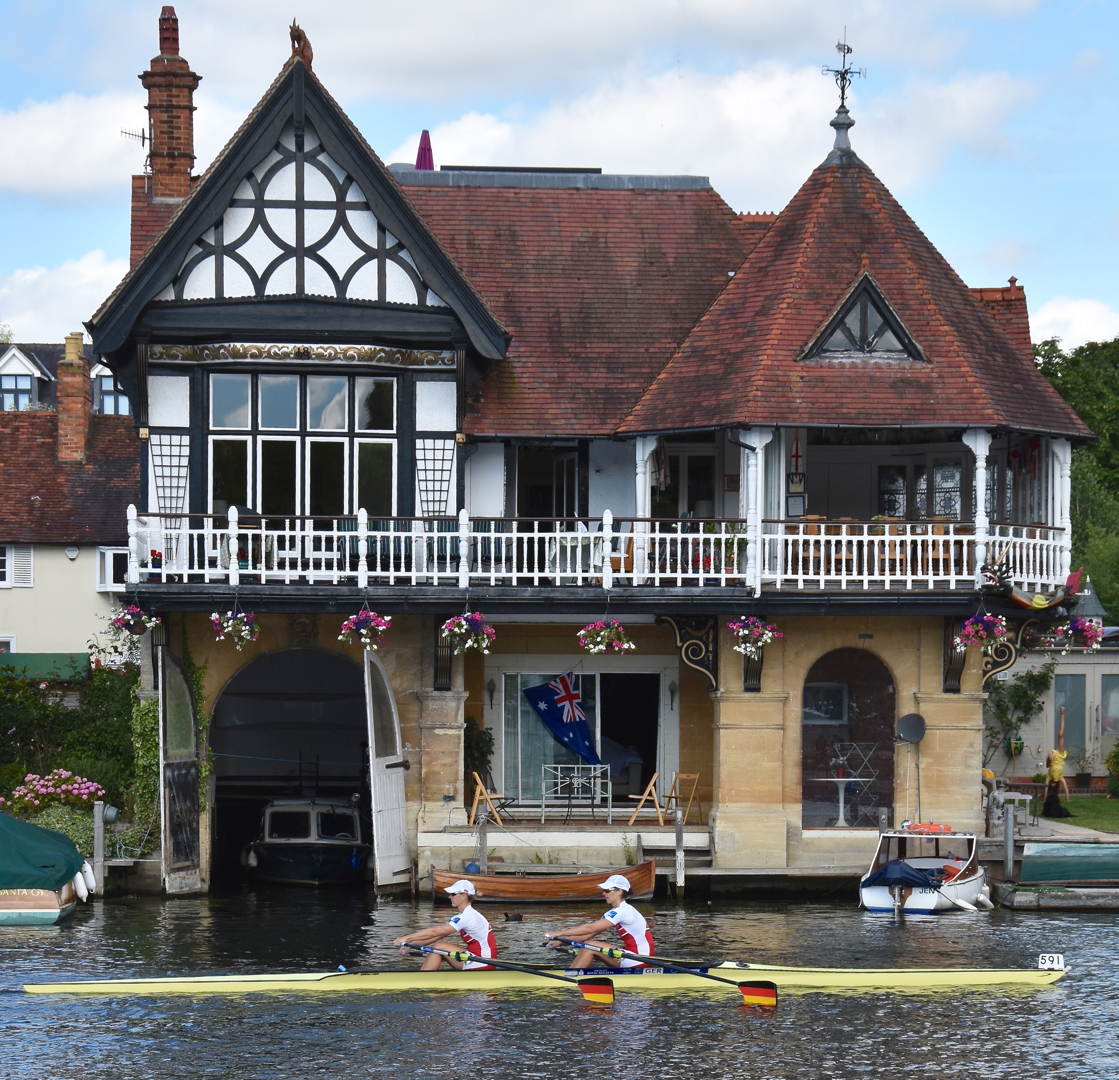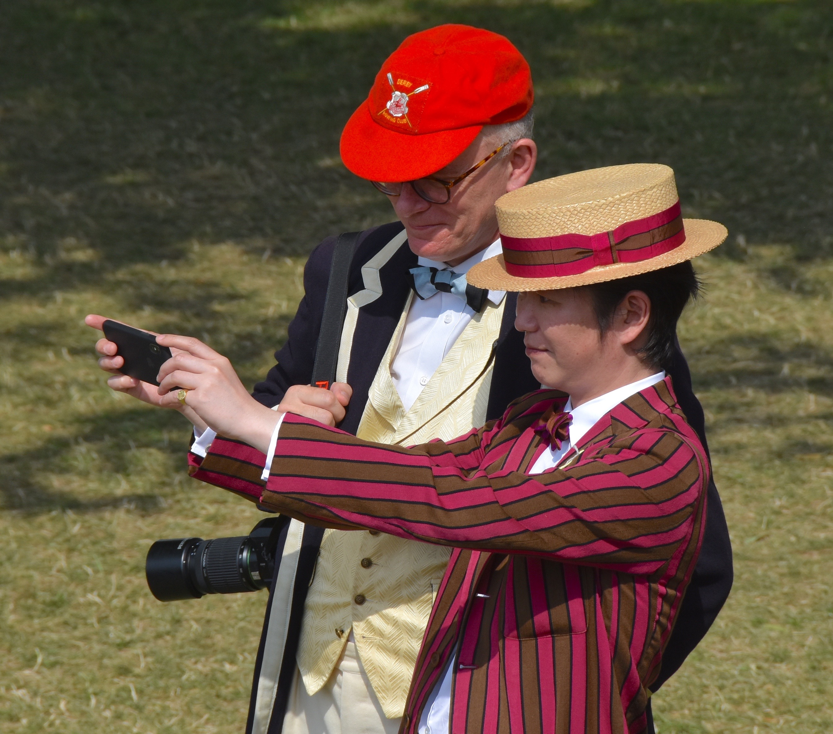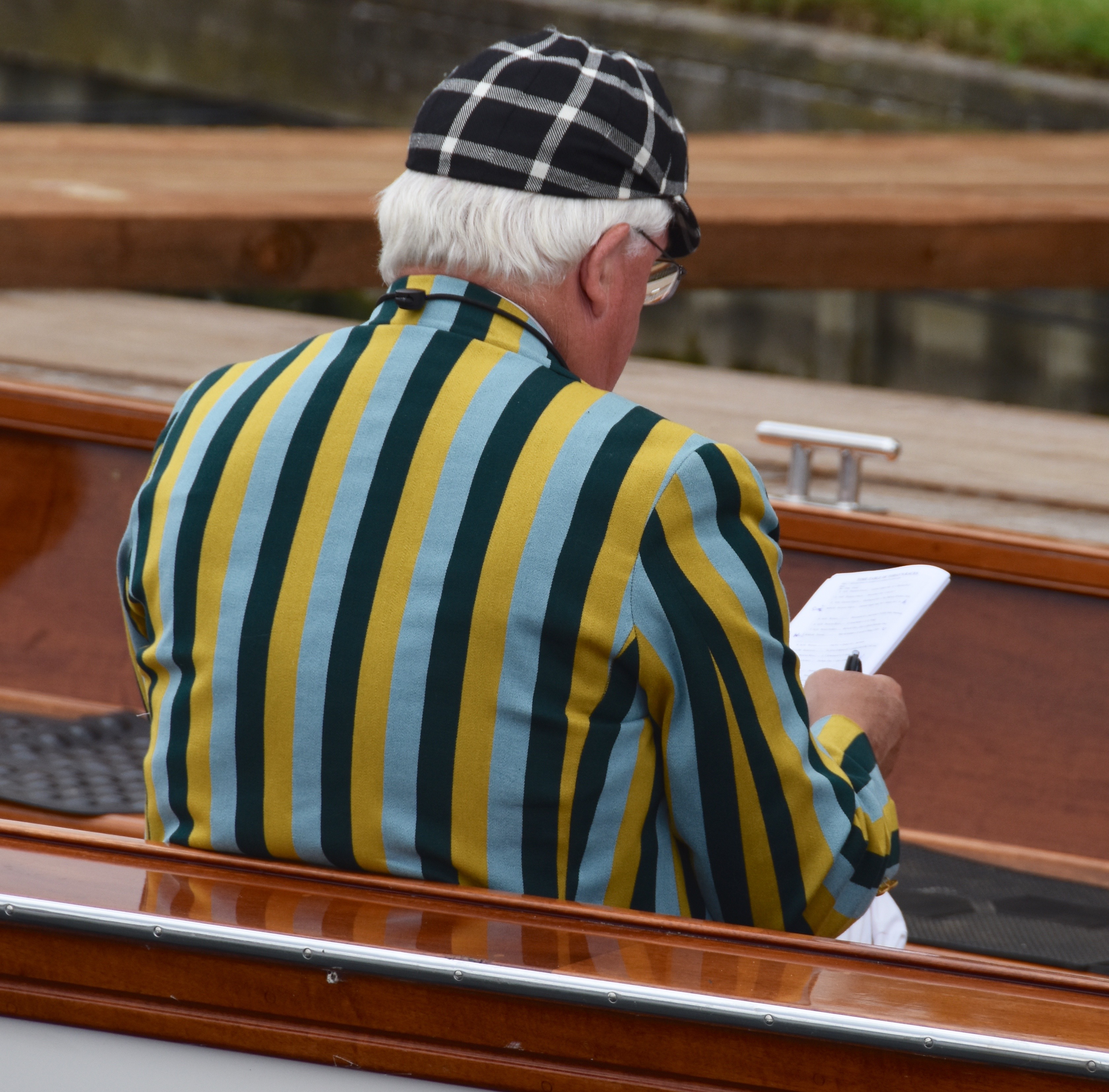 In Saturday’s fight between the last four in the Wyfolds (Club Coxless Fours), Norske Studenters Roklub, Oslo, Norway, beat Mercantile Rowing Club, Australia, by 3/4 length.Before they went out to meet Newcastle University ‘A’ in the Temple (Student Eights), the cox of Northeastern University, USA, bade each of his crew good luck (it must have worked, they won by 1/3 length).Latymer Upper School ‘A’, happy after defeating Marlow by 2 1/4 lengths in the Diamond Jubilee (Junior Women’s Quads). Later in the day, they raced Henley ‘A’ and won by 2 1/2 lengths.A stylish pair.Twigg of New Zealand leading Dymchenko of Ukraine by 1/3 length in the Princess Royal (Women’s Open Sculls).Harvard style. The bowman of the Crimson’s Prince Albert crew.Leander and Imperial College going to the start to race University of London and Molesey Boat Club in the Remenham (Women’s Open Eights). Leander and Imperial won by 1 2/3 lengths.A comparatively new phenomenon – a Doggett’s Coat and Badge blazer.In a semi-final of the Stonor (Women’s Open Double Sculls), Lu and Wang of the Chinese National Rowing Team beat Baer and Richter, Germany, by 1 length.Lu (bow) and Wang (stroke).The Marlow girls after their defeat by Latymer Upper School in the Diamond Jubilee.Hollandia Roeiclub clearly gaining no pleasure in beating their countrymen, ASR Nerus and RSVU Okeanos, in an all-Dutch semi-final of the Town Cup (Women’s Open Coxless Fours). Hollandia equalled the Barrier record, set a new Fawley record by one-second and broke the course record by four seconds.Steward Mike Williams in Goldie blazer and Trinity Hall, Cambridge, cap.Oxford Brookes show some muscle in their Ladies’ Plate (Men’s Intermediate Eights) race against the British U23 eight, racing as Cambridge University and Newcastle University. Brookes equalled the Fawley record and had a one-length win.Lord Moynihan in impromptu coxing kit with an old boys’ eight from his former school, Monmouth. They rowed past during the Saturday lunch interval to mark the boat club’s 150th anniversary. As Colin Moynihan, he was a double Blue at Oxford, coxing the victorious 1977 Boat Race Crew and boxing against Cambridge Bantamweights. Later, he steered the British eight that won Silver in the 1980 Moscow Olympics and was Minister for Sport in 1987 – 1990.Oyen and Steenman of Hollandia Roeiclub are applauded by fellow oarsmen while in the process of beating Ball and Ballinger of Leander by 3 1/2 lengths in the Silver Goblets (Men’s Open Coxless Pairs).A more civilised way to row (or scull) at Henley.An event that was always going to be noisy – Eton against Shiplake in the ‘PE’ (Princess Elizabeth, Men’s Junior Eights). Eton beat their highly rated rivals by one length.Simple and elegant, appropriately dressed for a summer garden party – Henley style at its best.Baer and Richter pass one of the delightful boathouses opposite the finish.Photographer, filmmaker, rower and coach, Hamish Roots. Check out his work on Instagram.Maroon v Burgundy. In one of the best races of the regatta, Harvard was behind Oxford Brookes for most of this semi of the Prince Albert (Student Coxed Fours) but the Americans rowed through the Brits in front of the Stewards Enclosure to win by four feet.Members of the Green Lake Crew, USA, find a good viewing point near the finish.The end of the row past by the 1989 winners of the Ladies’ Plate – Nottinghamshire County Rowing Association. Chris Dodd told the story of their famous re-row in his recent post.The ‘2’ man of the Notts County Crew, Peter Haining, one of the sport’s great characters. In 1990, when he was persistently late for training in the eight, his coach pushed him into single sculling. Three years later, he was World Lightweight Sculling Champion, a title he won again in 1994 and 1995.Some dapper gentlemen. I presume the ‘RMC’ on their blazers indicates the Royal Military College of Canada, and that they are supporting that institution’s entry in the King’s Cup.This Henley, I finally had the pleasure of finally meeting HTBS contributor, William O’Chee, over on a fleeting visit from Australia. This was something that I had been looking forward to not just because he is a knowledgable fellow rowing historian, but also because he is a man of multiple interests, talents and experiences, one of those people who seem to find more than 24 hours in a day.A picture from Brasenose College Boat Club, Oxford, Archives. I posed William by Henley Bridge to match this picture of his fellow Brasenose College oarsmen, winners of the 1862 Stewards’ and Visitor’s Challenge Cups. Despite painfully slow exposure times, the Victorian photographer managed to get a sharp image of the group. One hundred-and-fifty-seven years later and using a digital camera with a 24-megapixel sensor, I failed to get William in proper focus (though it was after a good lunch in Leander…)