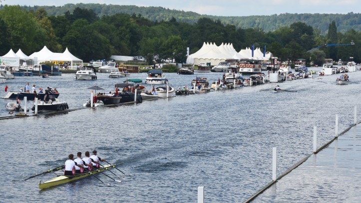 While this year’s regatta had a record-breaking entry of 660 crews entered for 340 places, pundit Daniel ‘Fatsculler’ Spring wrote ‘behind the headlines the entries in some events (particularly The Grand, Stewards and Queen Mother) are disappointingly small’. This is true but ’twas ever thus at Henley, it is the nature of the beast that international events are offered in a regatta that is not on everyone’s international calendar in the same year. This is reflected in some of the wide winning margins in the Open events. However, in the case of the Grand particularly, there have, at times, been some thrilling races involving only two entrants. Conversely, the Queen Mother has not produced much excitement in recent years and should perhaps be renamed the ‘Give Leander More Henley Medals Cup’.