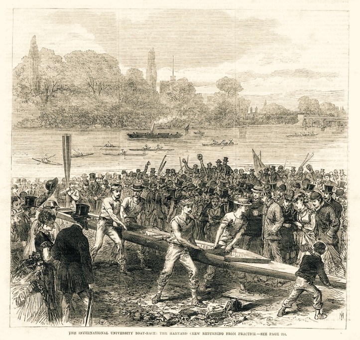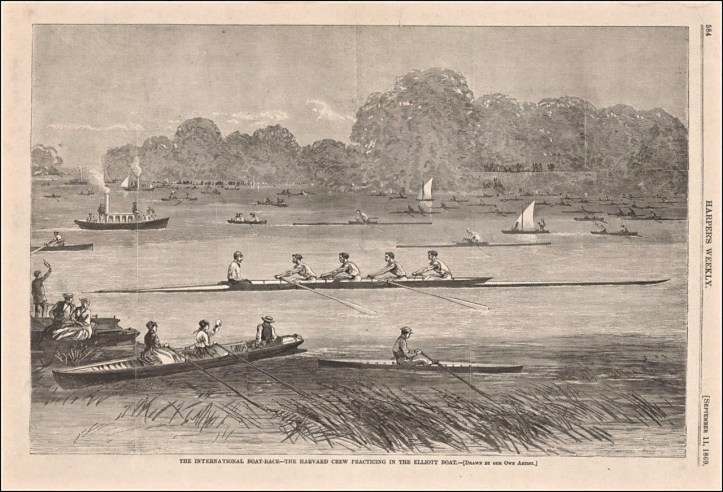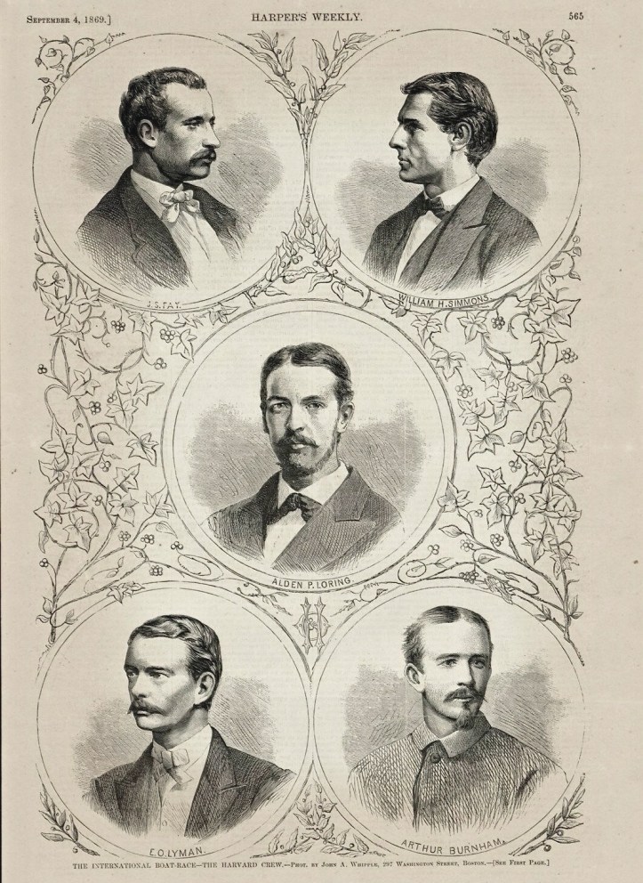 Tom Weil rightly points out an error in my piece about the great Harvard-Oxford race of 1869, namely that Joseph S Fay and E O Lyman joined Alden P Loring and Simmons as substitutes for Messrs Rice and Bass sometime after rowing in Harvard’s 6-oar against Yale at Worcester on July 23. They did not, therefore, cross the Atlantic before that date. It doesn’t materially effect the story, but should be noted for the record. We don’t know when they actually sailed for England.