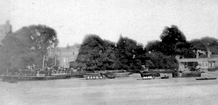 Oarsmen from Liverpool and Royal Chester escorted the Americans into the Mersey, and after hospitality at the Adelphi Hotel they were conveyed to Putney by special train coupled up to a flatcar for the two boats shipped from Boston, They were put up at the Star & Garter until their accommodation at the White House, Barnes, was ready.