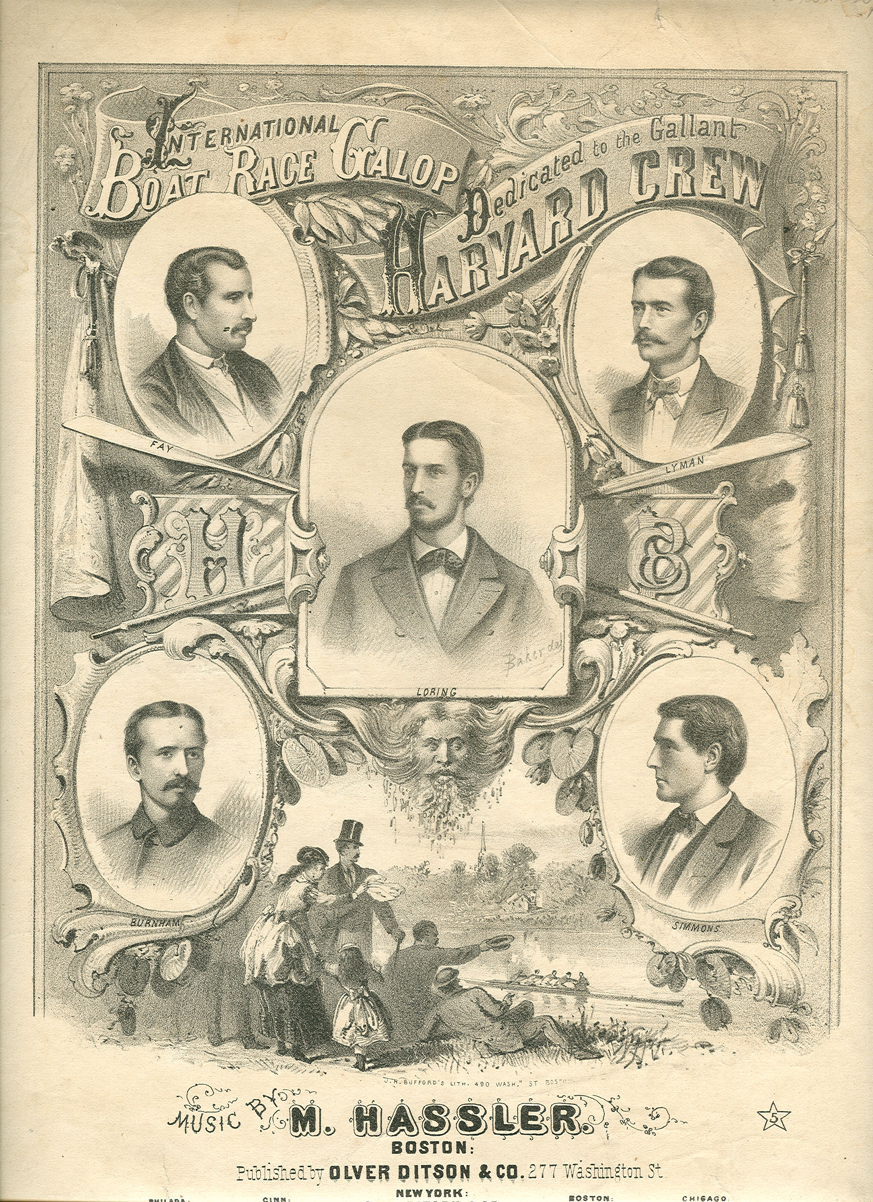 While students in Cambridge, Mass, organised private theatricals and alumni put their hands in their pockets, Simmons borrowed a boat and formed a crew that tested its strength against several of the best professional combinations in New England. By early July, Joseph S Fay and F O Lyman had joined Alden P Loring and Simmons as substitutes for Messrs Rice and Bass, and on 10 July the Crimsons embarked aboard the Inman steamer City of Paris, accompanied by their boatbuilder and two servants, and escorted out of New York harbour by crews from Nassau BC and other clubs.