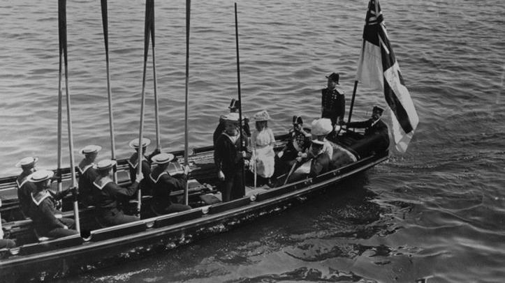 George V ascended the throne after the death of his father, Edward VII, on 6 May 1910. His Coronation took place at Westminster Abbey on 22 June 1911 and a fortnight later he sailed into Kingstown (present day Dún Laoghaire) to begin a five-day visit to Ireland. He, Queen Mary, The Prince of Wales (later Edward VIII) and Princess Mary were rowed ashore where a waiting carriage took them to Dublin Castle.