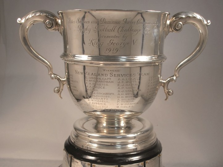 The Royal Henley Peace Regatta of 1919 wasn’t the only event that year to receive a trophy from King George V. Perhaps, the most widely known is the one presented for rugby. Originally designated as an ‘‘Inter-Services Competition’, to be played under the auspices of the Army Rugby Union, it was competed for by six teams: Australia, New Zealand, South Africa, Canada, the Royal Air Force, and the British Army under the name of the ‘Mother Country’. I prefer the name The Lions which is in use since 1888 for a unified team from GB and Ireland but perhaps that may have lead some wag to call them The Lions and the Donkeys. Once it had received royal patronage, it too became known as The King’s Cup and like its rowing equivalent, it is not engraved as such.