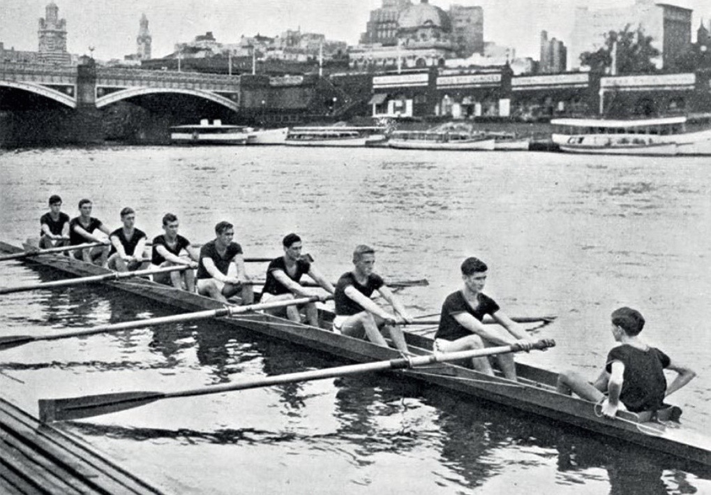 Peter Haig-Thomas’s success as a coach at Magdalen was little short of extraordinary. Magdalen in 1953 went Head of the River and won the (University) fours and pairs – and also the (Visitors) at Henley Royal Regatta. The secret of his success was not rigorous and long training, nor was it motivational speeches. He avoided both… His secret was clear focus on the entry of the oar into the water. It was to be hard and crisp, but without losing length in the water by merely rowing in the blade hard, as was the teaching of his long-term rival, Steve Fairbairn.