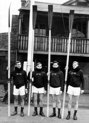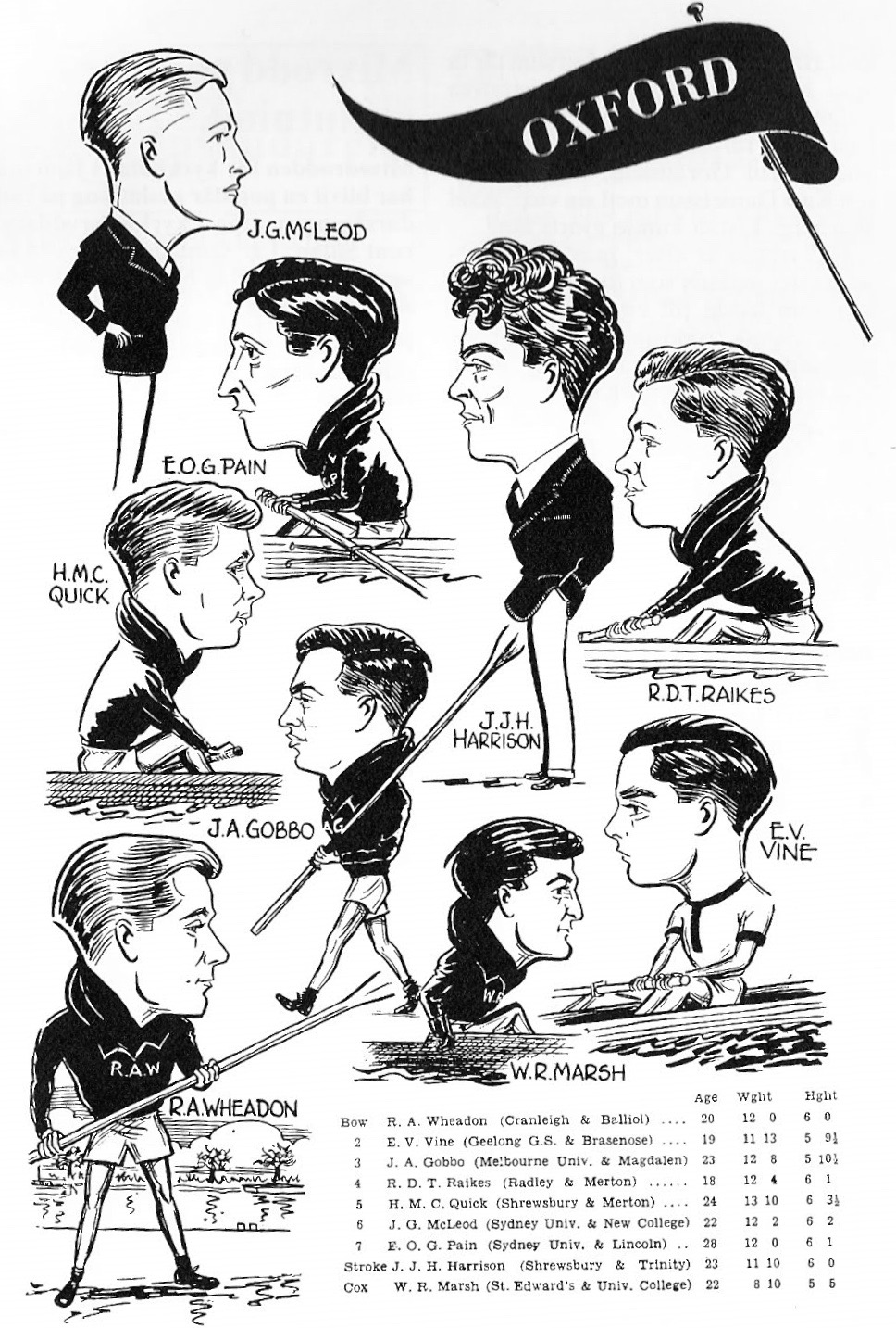 The five Australians in the 1955 Oxford Crew: EV Vine, EOG Pain, JA Gobbo, JG McLeod, and RH Carnegie.