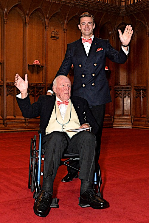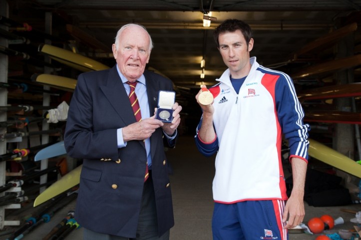 Robert Treharne Jones, of Leander Club, sent a nice addition. Robert writes: Paul Bircher was the Senior Member present at Leander’s bicentenary banquet at the London Guildhall last year. I had the pleasure of MC’ing the parade of Leander Olympians onto the stage, the climax being reached when Pete Reed pushed Paul on stage in his wheelchair. (Many thanks to photographer Peter Holland for allowing HTBS to use the wonderful picture of Bircher and Reed.)