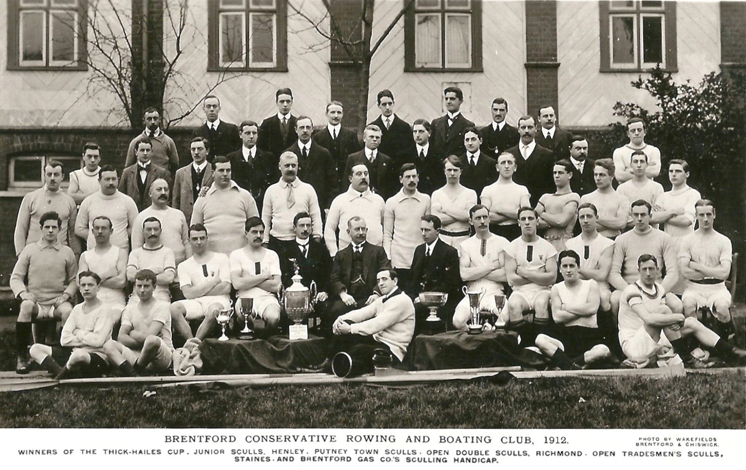 Brentford is a fairly unremarkable part of West London, lying at the confluence of the River Brent and the River Thames. The website ‘Brentford High Street Project’ says it ‘brings together information about the people and properties of Brentford, particularly the High Street, from 1840’. This local history site contains four pictures of the Brentford Conservative Rowing and Boating Club (BCRBC).