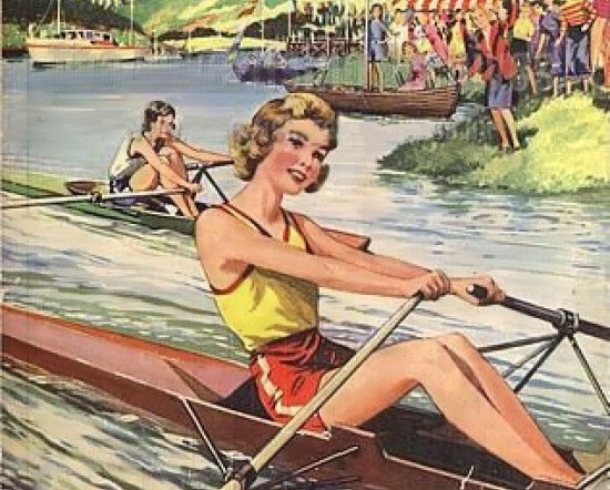 Wonderful! I have one of the “originals” of this, which was the cover of an English girl’s annual book in the 1950s, and have included images of this sort in my study of the history of women and rowing, which necessarily includes visual examples that play off a sexploitation vibe. Your verse masterfully captures, not necessarily what was then the case, but what should then have been the case, and what would almost certainly be the case today. Well done.
