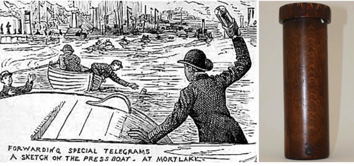 Rowing, and particularly fixtures like the Boat Race that run from A to B over long distances, has challenged newspapers, photographers and broadcasters faced with following the action and reporting on it for nearly two hundred years. The RRM has a 19th-century canister into which a reporter on the press boat would seal his account of the race at various points and toss the canister to a boy in a dinghy who would catch it or fish it out of the water and take it to a runner on the towpath, whose job it was to leg it to the nearest telegraph office. There was great rivalry amongst papers – particularly titles in Oxford and Cambridge – to get the result in print on the streets minutes after crews crossed the line. The Cambridge Evening News got it down to four minutes in the nineteenth century.