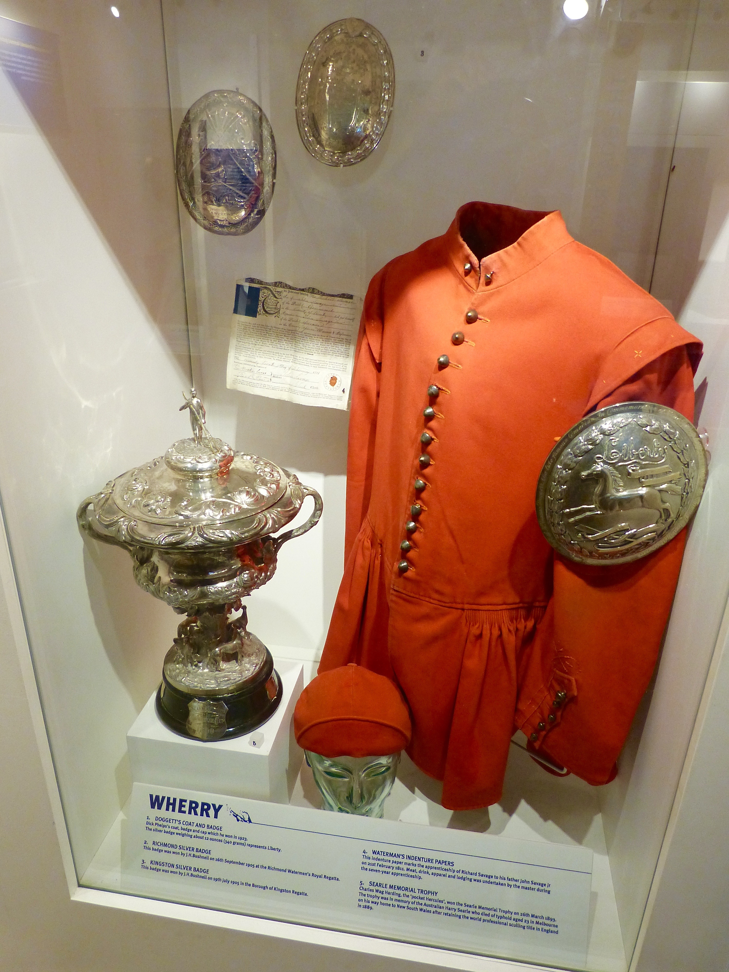 The annual sculling race for watermen’s apprentices from London Bridge to Chelsea was started by the Irish actor Thomas Doggett in 1715. This 5-mile test of watermanship for which a red coat and breeches and a silver badge is awarded to the winner serves to remind us that rowing was a way of life for centuries before its adoption as a sport by amateurs. It reminds us that rowers row, while the rest play games. Some examples of working boats – cargo carriers, coast guards and warships of the ancient world; pilot gigs, whaleboats, life boats, ship-to-shore tenders, ferries and wherries, Whitehalls and gondolas are modelled in the RRM’s International Rowing Gallery.