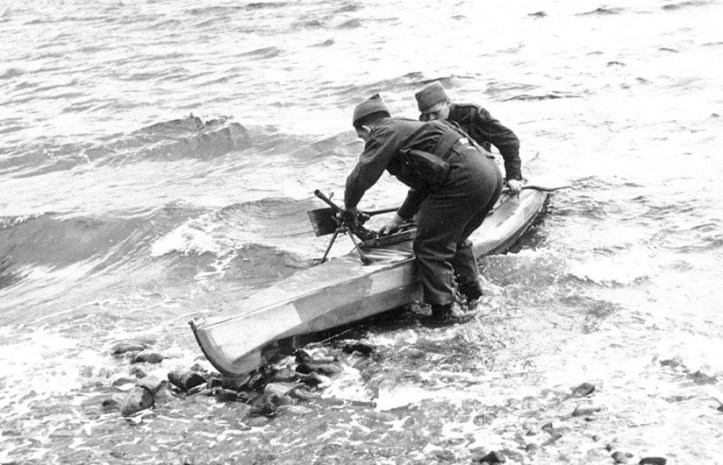 During the 1939 – 1945 War, DHT started military service in the unit responsible for logistics, the unglamorous Royal Army Service Corps, but he soon volunteered for the newly formed Commandos. After training, he joined the Special Commando Boating Group, a unit that specialised in infiltration of enemy positions using canoes and kayaks. It was composed of those experienced in the use of such craft including Canadians, Scandinavians and polar explorers such as Peter Scott and DHT himself. Transferred to No. 4 Commando and attached to the Parachute Regiment in late 1943, he was part of the first wave airborne assault during Operation Overlord, the invasion of France on 6 June 1944. David Haig Thomas was killed in action on the morning of D-Day and is the sole member of the liberating forces buried in the churchyard of the village of Bavent in Calvados, Normandy.
