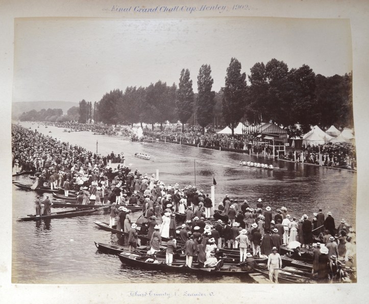 (Third Trinity) came to Henley in 1902 with a very brilliant crew containing seven Blues… Not many days before the race, Nelson (stroke) had an accident, which compelled him to withdraw from the crew. His place was supplied by J. H. Gibbon, who happened to be at Henley, and was not very much out of condition. He had stroked Cambridge to victory against Oxford in 1899 and 1900. Such a catastrophe as a change of strokes so soon before the race might well have upset any crew. Gibbon, however, did extremely well for them, and so excellent was the uniformity which they had already attained that their pace seemed in no way to suffer from the change. Against them Leander had brought a crew of Oxonians, all Blues. Third Trinity, however, in the final gave them very little chance, though Leander had the best of the station. They went ahead at once, and won with great ease.