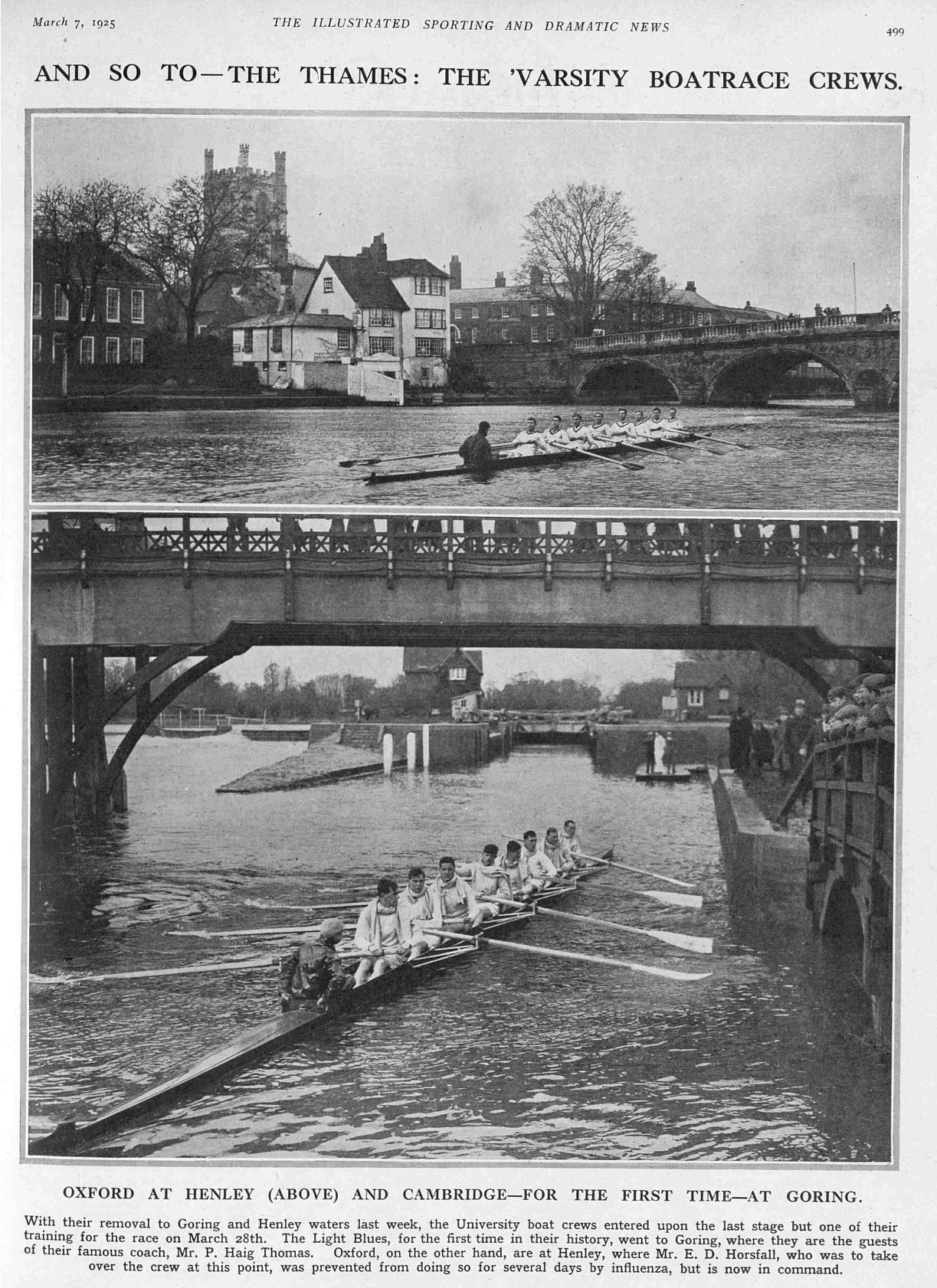 Although a strict amateur, in coaching terms Peter Haig Thomas was ‘a gun for hire’. In the words of his Times obituary ‘he was always willing to help any crew, however humble, providing they were prepared to accept his teaching’. The result of this was that at various times between 1922 and 1959 he coached the Orthodox style at Oxford and Cambridge, both for University crews and for certain college boat clubs, and for Leander. However, he would not assist the Grand Old Clubs on the Thames Tideway as Metropolitan rowing mostly followed the teachings of his rival, Steve Fairbairn.