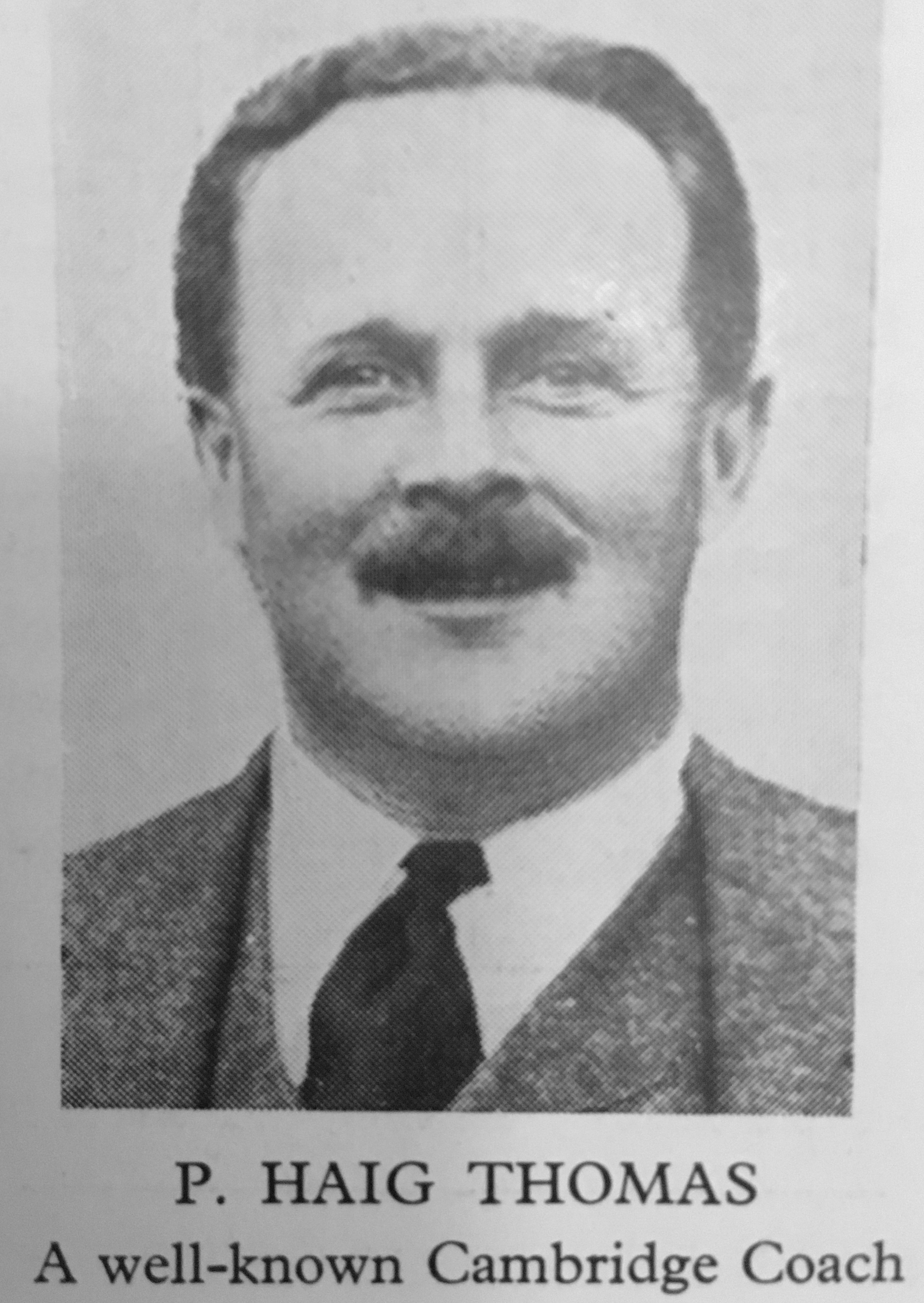 Peter Haig Thomas could never be inconspicuous, and certainly no time could he be mistaken for a nonentity…. He was a rich personality in rowing, and if he did not make a wide circle of friends, it was because he never sought to. He played a lone hand, with his whole life a challenge to others. It had no dull moments….