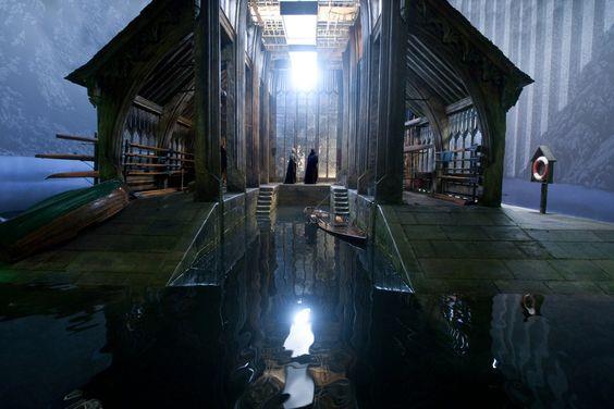 Snape’s Death Scene – spot the rack of old oars, the metal riggers and the brass loud hailer.