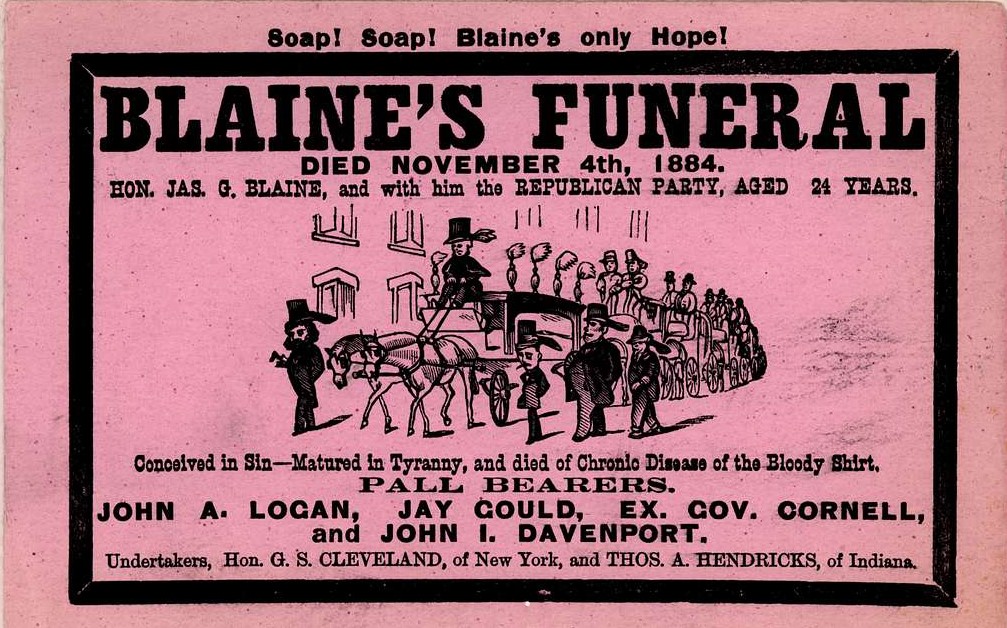 After he was nominated as the Republicans’ candidate in 1884, the campaign was very aggressively led by both parties in respect of the involvement of the candidates in scandals and personal misconduct. Also, the issue of personal character was more strongly emphasized than in previous campaigns and a very tight vote was expected. All this made a comparison with the single sculls matches between Courtney and Hanlan obvious.