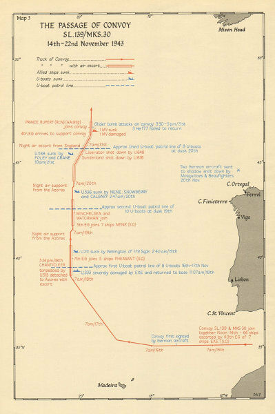 The Allied convoy had been spotted by the German Luftwaffe as soon as it had entered the Atlantic from the Mediterranean. As a consequence, it was being shadowed by a fearsome U-boat wolfpack. By the late evening of the 20th, the convoy had reached a point approximately 620 miles due west from the north-west tip of Spain. The Liberators of 53 Squadron made radio contact with the convoy and in the early hours of the 21st the collection of Allied ships reported the comforting sight of the planes a few hundred feet above the Allied ships.