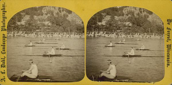 Throughout the late 1870s and 1880s, the men of MBC embraced this club spirit as they competed in the more formal and organized regattas of the Mississippi Valley Amateur Rowing Association and the Northwestern Amateur Rowing Association. They complemented their athletic successes by routinely issuing exclusive invitations to regattas and fetes at their country-club-like venue on Raspberry Island that were visual feasts of Victorian pomp.