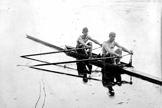 MBC’s early members rowed singles, doubles, and, eventually a four out of a covered-over and leaky scow. Their cramped ‘boathouse’ forced membership to be capped at 20. The young oarsmen refined their technique on the Mississippi River, issuing the occasional single scull challenge and engaging the scrappy clubs of Faribault, Red Wing and Stillwater to race in paper four-oared shells. Even after the Minnesotas acquired land and a boat house on Raspberry Island in 1874, their closest established rivals in Wisconsin and Chicago were too inconveniently distant to race.