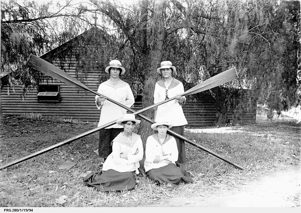 Tim Koch suspends patriarchal power structures and gender norms for 24 hours (you’re welcome) to mark International Women’s Day 2020 on 8 March with a selection of appropriate rowing pictures from the online photo archive of the State Library of South Australia (SLSA).