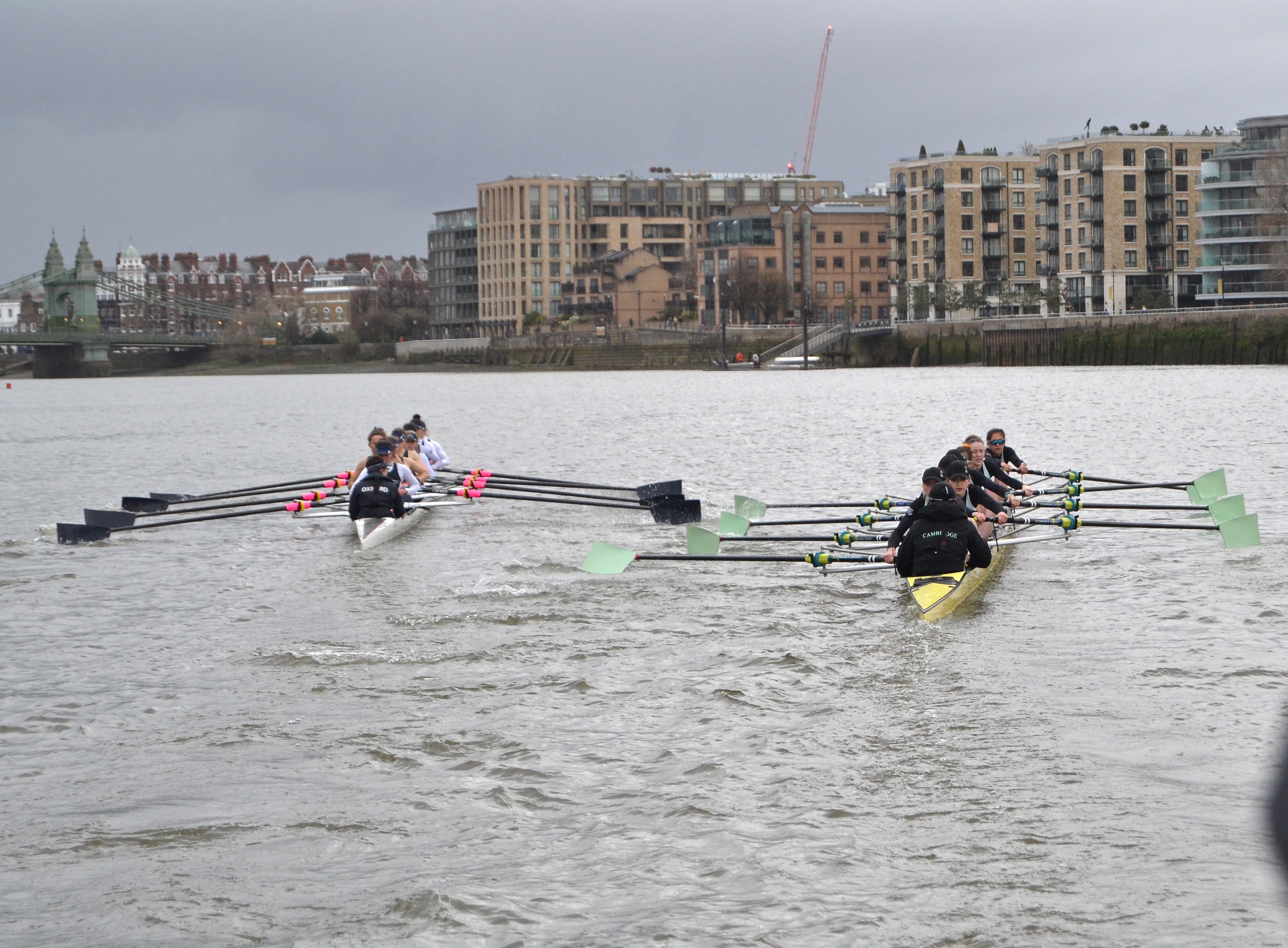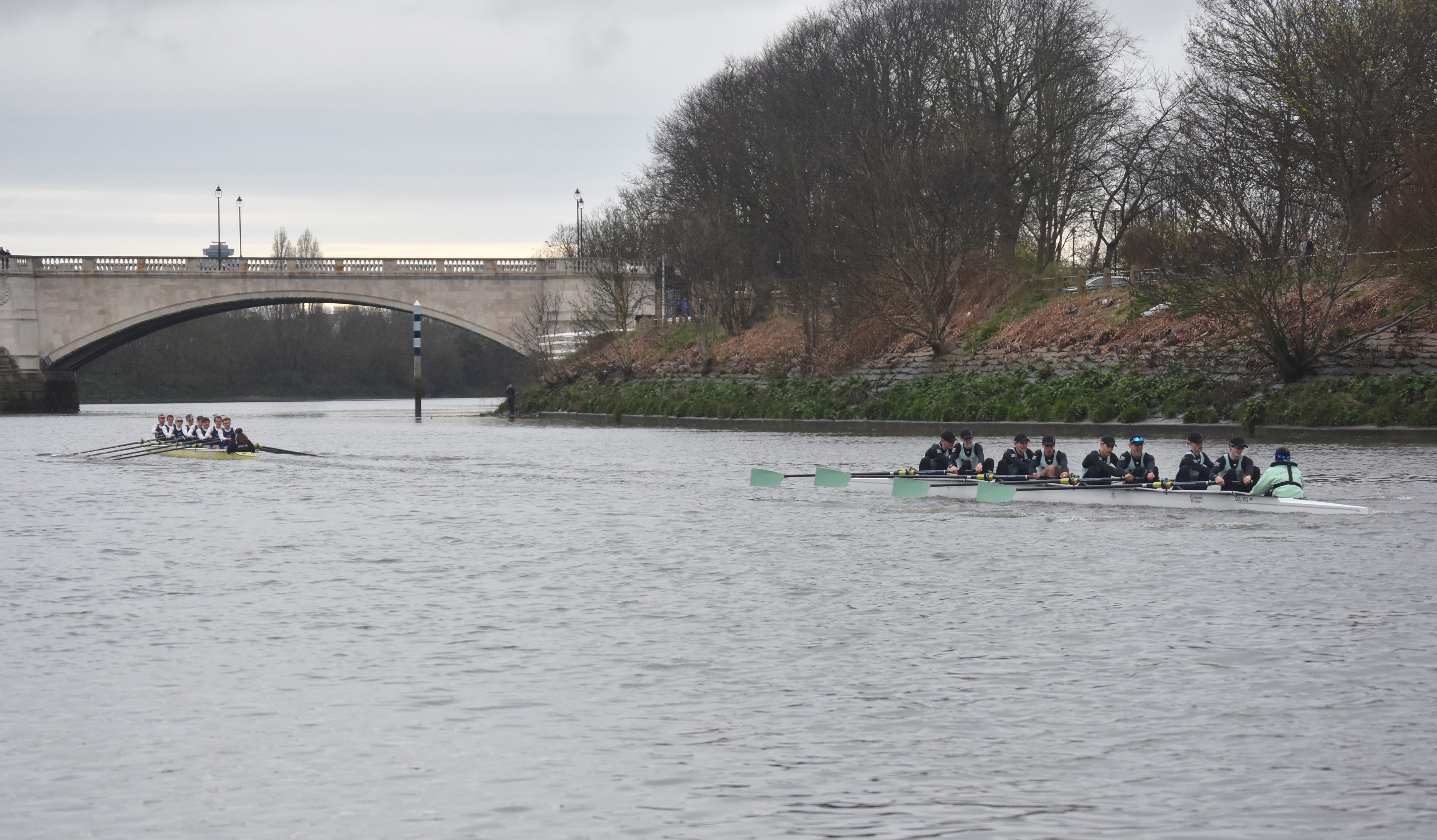 After Barnes, a reinvigorated Cambridge, a crew that would not give up and which pushed like heavyweights, continued to move ahead, finishing downstream of Chiswick Bridge 6 lengths up in a time of about 23 minutes 24 seconds.