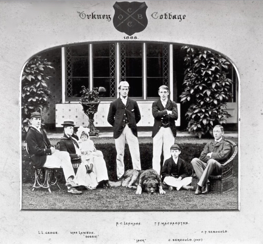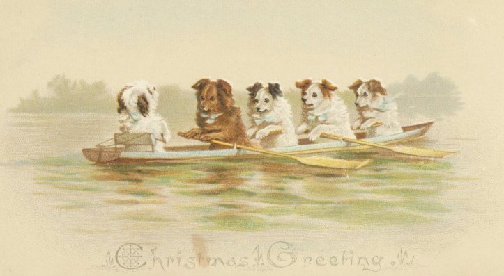 Jerome later said that the character of Montmorency ‘developed out of that area of inner consciousness which, in all Englishmen, contains an element of the dog’. I am not sure about this but certainly believe that the English/British love of dogs stems for the fact that the traditional ‘stiff upper-lip’ precluded open affection for humans but did allow the most extravagant displays of sentiment towards canine companions. The Anglo-Upper-Lip is somewhat flabby these days but, in times when it was a stiff as a newly built eight, rowers in particular seemed highly attached to their dogs – as any number of old crew pictures show.