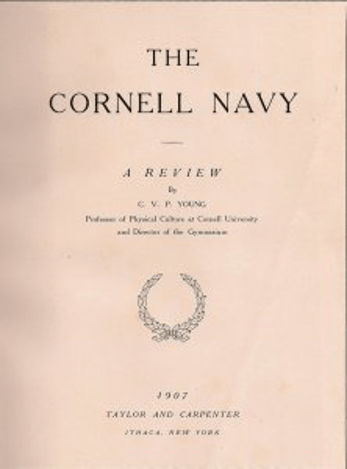 More than a year ago, when I was searching for some special books, I happened to click on the wrong button on AbeBooks. Instead of getting the newly posted rowing books, I got the most expensive ones. To my astonishment I found that a bookseller in Portland, Oregon – this beautiful town of books – was offering C.V.P. Young’s The Cornell Navy: 1871-1906 – A Review for $50,000 (yes – a 5 followed by four zeros: $50,000!). Young’s book, from 1907, in red cloth with two crossed oars as decorations on the cover, has 71 pages and many nice photographs as illustrations. Young, professor of “Physical Culture at Cornell University and Director of the Gymnasium,” had dedicated the book to Cornell’s head coach at the time, Charles Courtney, to all rowing Cornellians known as the “Old Man”. Courtney was a successful amateur sculler and rower, and, later, is also regarded as one of America’s most prominent professional scullers, who, after his career as a professional rower, became a famous coach at Cornell.