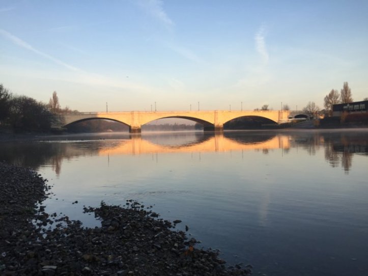 This picture was the image from Day 30 of the series – it is taken from the Middlesex bank looking up-river to Kew Rail Bridge. The island beyond the bridge is Oliver’s Island. As a student, I rowed from the University of London Boat House a short way downriver from where I took this picture and this scene is etched in my memory.