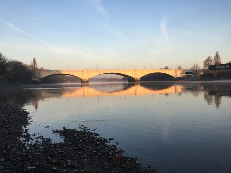 A short way downriver is Chiswick Bridge. Every rower who has raced a Tideway head will know this view – it’s almost exactly as you see it as you start the Championship course – 4 ¼ miles lies ahead of you and you are already feeling tired. The only difference is it’s hardly ever this sunny and the tide is never this low on a race day.