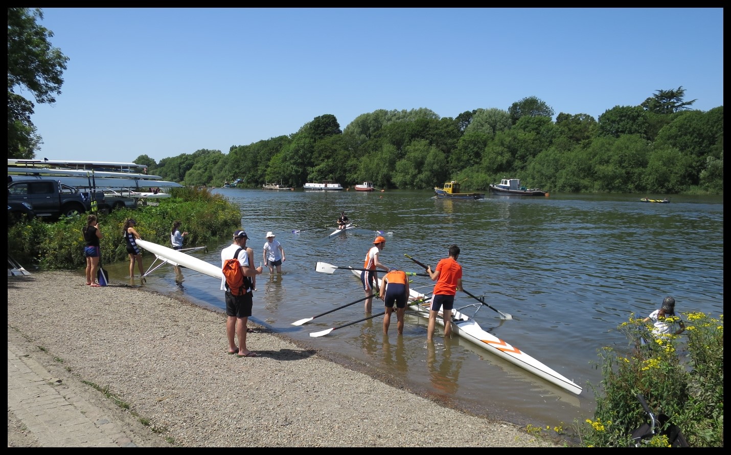 Richmond is a traditional river regatta – crews race side by side 1250 metres downstream from the start by Ham House. The course is not, shall we say, quite straight, and, as a consequence, both the start and the finish are staggered in order to offset the shorter course experienced by the crew on the inside (Middlesex) station. The stagger on the finish has caught out many a crew who have relaxed too soon believing they were comfortably ahead.