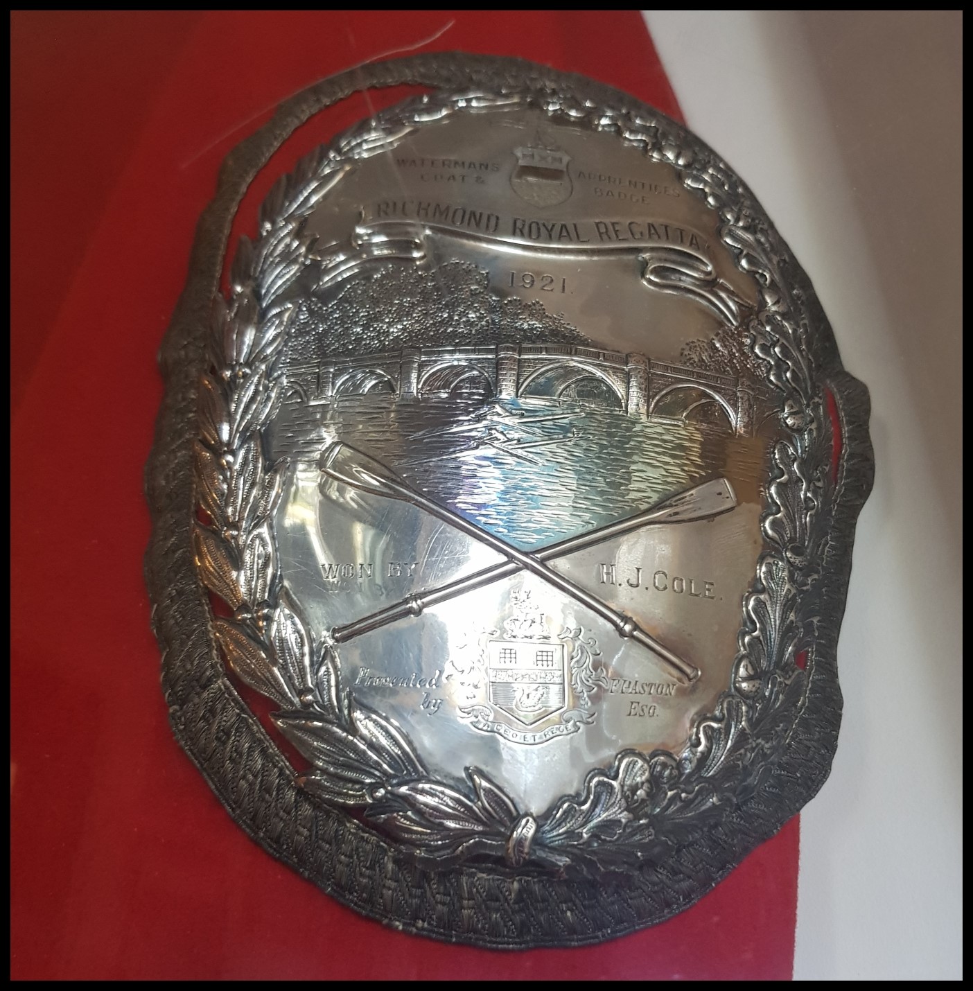 Assuming the report is reliable, the Prince of Wales in 1776, would have been George, later George IV. His birthday was 12 August – a very suitable time of year for a regatta. The reference to royal attendance at a regatta is interesting, because in the archives of the present-day Richmond Amateur Regatta is a programme printed on silk for the “Second Annual Richmond Junior Watermen’s Royal Regatta” which “respectfully informs … The Nobility, Gentry and Inhabitants generally of Richmond … that a ROWING MATCH will be contested on Monday, the 9th day of August 1869 BY FREE WATERMEN OF RICHMOND”.