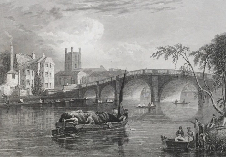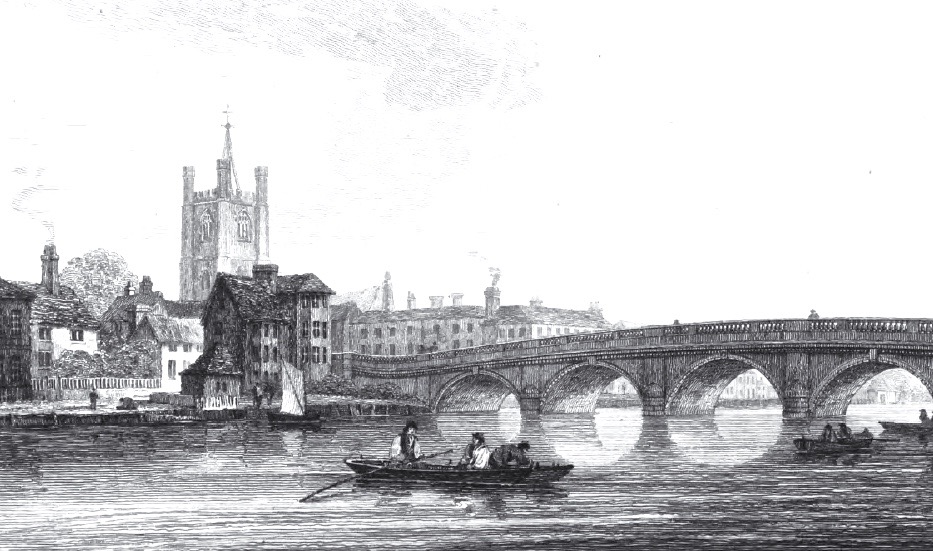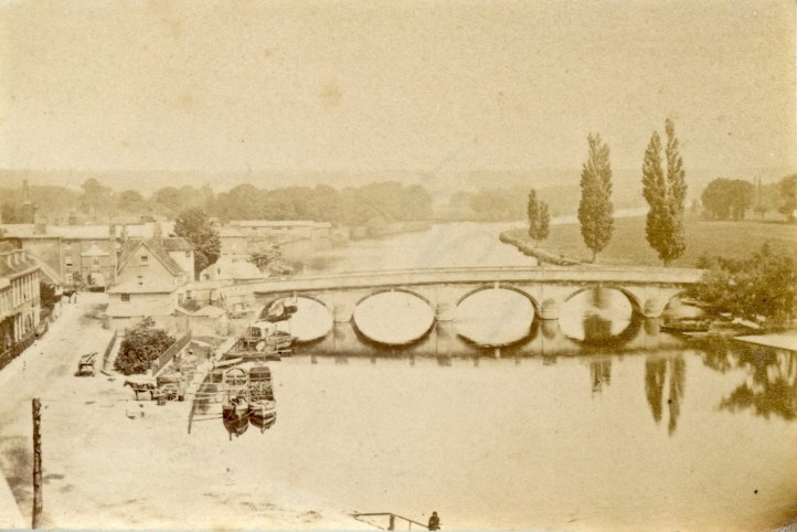 A quiet Henley-on-Thames in 1867. The current bridge was built in 1786, but a wooden span over the river dated to at least 1232. Some speculate that the Romans had a stone bridge here around AD43.