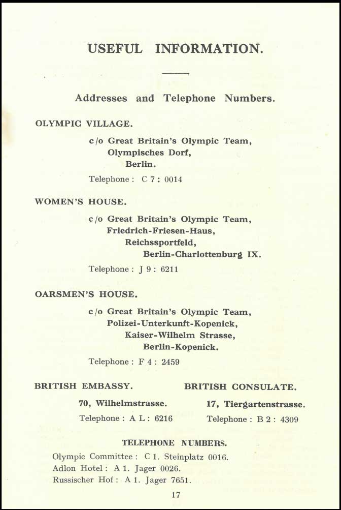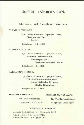 In 1936, Jack Beresford and Dick Southwood went to Berlin to represent Great Britain in the double sculls at the Olympic Games. Before departure they were sent a 40-page guide to the games produced by The British Olympic Association.