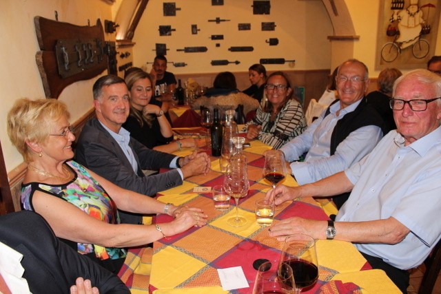 Thor Nilsen’s 85th birthday in Rome; l to r: Ingmarie Nilsen, Matt Smith, Ambra Di Miceli, Teresa Postiglione, Gianni Postiglione and Thor. Photo from “Thor Nilsen: Rowing’s Global Coach”.