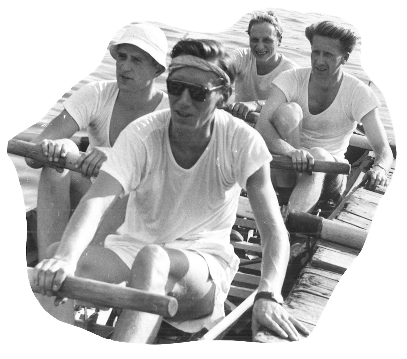 Thor Nilsen stroking an inrigger four. Photo from “Thor Nilsen: Rowing’s Global Coach”.