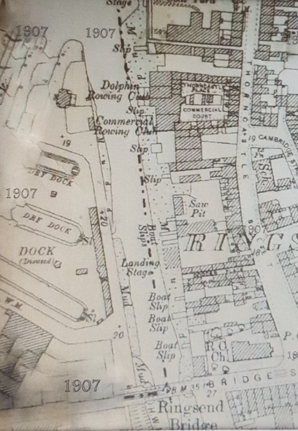 From about 1857 the Catholic University Rowing Club held races for its members in Ringsend. The race referred to above took place on 6th June 1861. Unusually the race was between the club heavy and lightweights.”After a spirited contest the lightweight crew won by 4 1/2 lengths. The prizes were four silver medals presented by the members of the club”