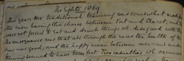 There is also this charming explanation, from 1869, of the importance of finding a balance between port and claret in providing for a crew in training.