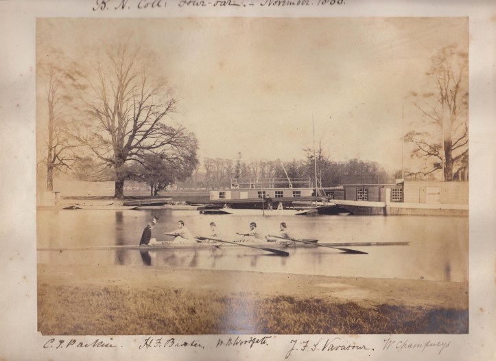Among the many photos preserved, I particularly like this one, taken in 1860, showing the Brasenose crew that won the Oxford University Fours that year.