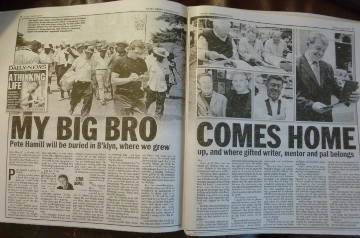For those readers outside the USA – or maybe outside New York City (obviously, this doesn’t relate to you Irish wherever you are) – who don’t know who Pete Hamill was, he was a journalist, columnist, essayist and author of several books. He lived and breathed New York City. Hamill was a celebrated editor of the New York Post and the New York Daily News, two newspapers which today are still tabloids both in format and style. He also penned screenplays, and, in 1975 – this is something my HTBS colleague Greg Denieffe will enjoy – Hamill won a Grammy for writing the liner notes to Bob Dylan’s Blood on the Tracks.
