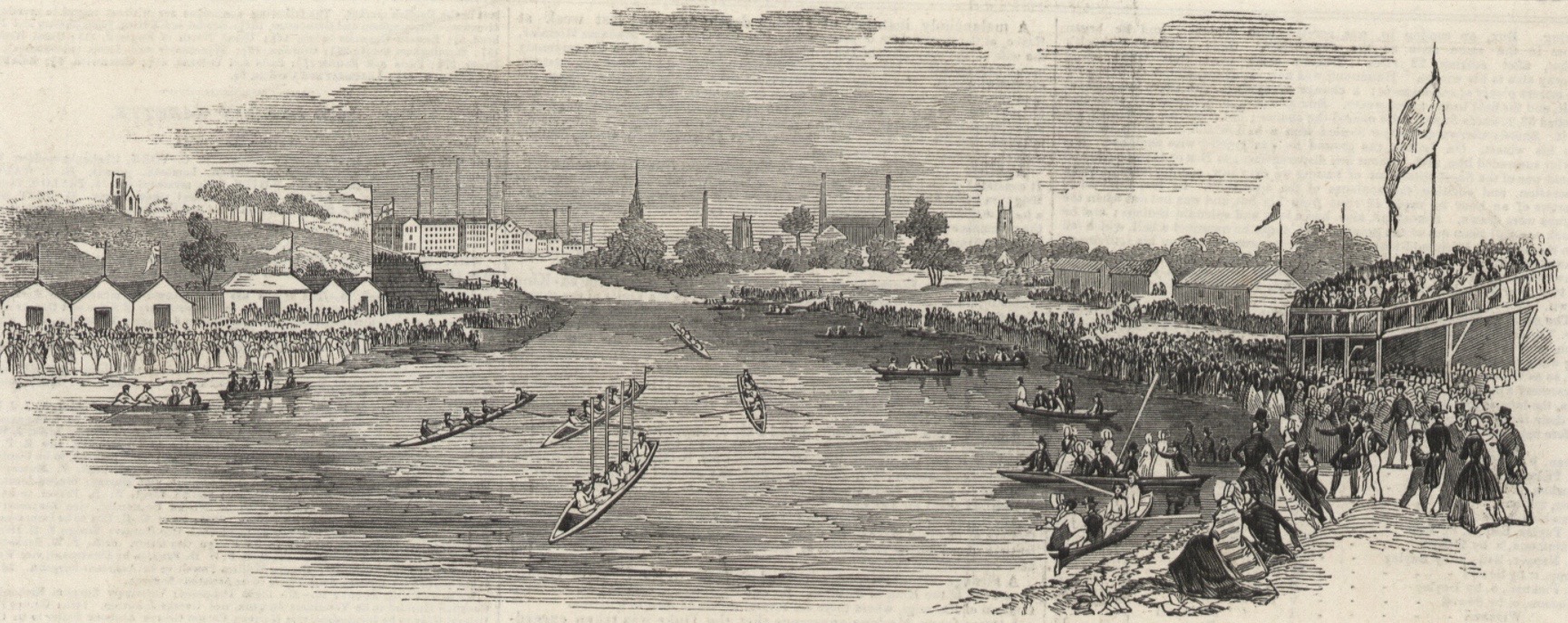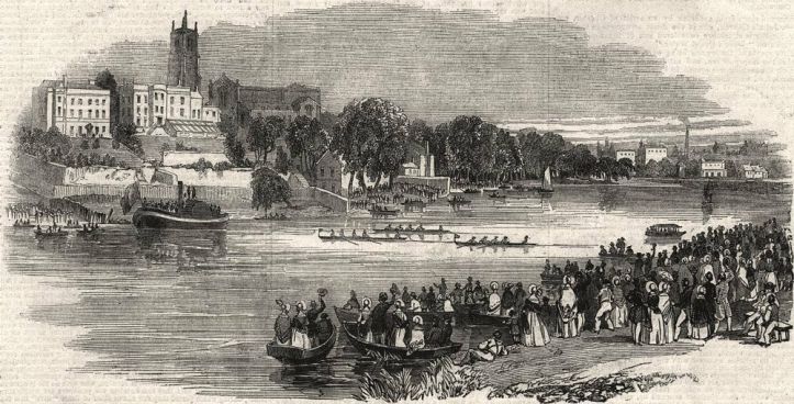 Chester Regatta, 1843. Established in 1733 and still in existence, Chester claims to be ‘The Oldest Rowing Regatta in the World’, 106 years older than Henley. A race for women in 1814 offered a two-guinea (£2.10) prize.Durham Regatta, 1844. The regatta dates to 1834 and claims the title ‘second oldest’ after Chester. Its website says that its roots actually go back to 1815 and that the regatta ‘grew out of an annual procession of boats from Prebends Bridge to the Old Durham Beck that commemorated the Duke of Wellington’s victory at the Battle of Waterloo’.Manchester and Salford Regatta, 1844. The “Illustrated London News” covered the racing and called it ‘the annual meeting of the Manchester and Salford Regatta Club’, saying that it was the third such event.Whitby Friendship Rowing Club, Whitby, Yorkshire, 1901.
